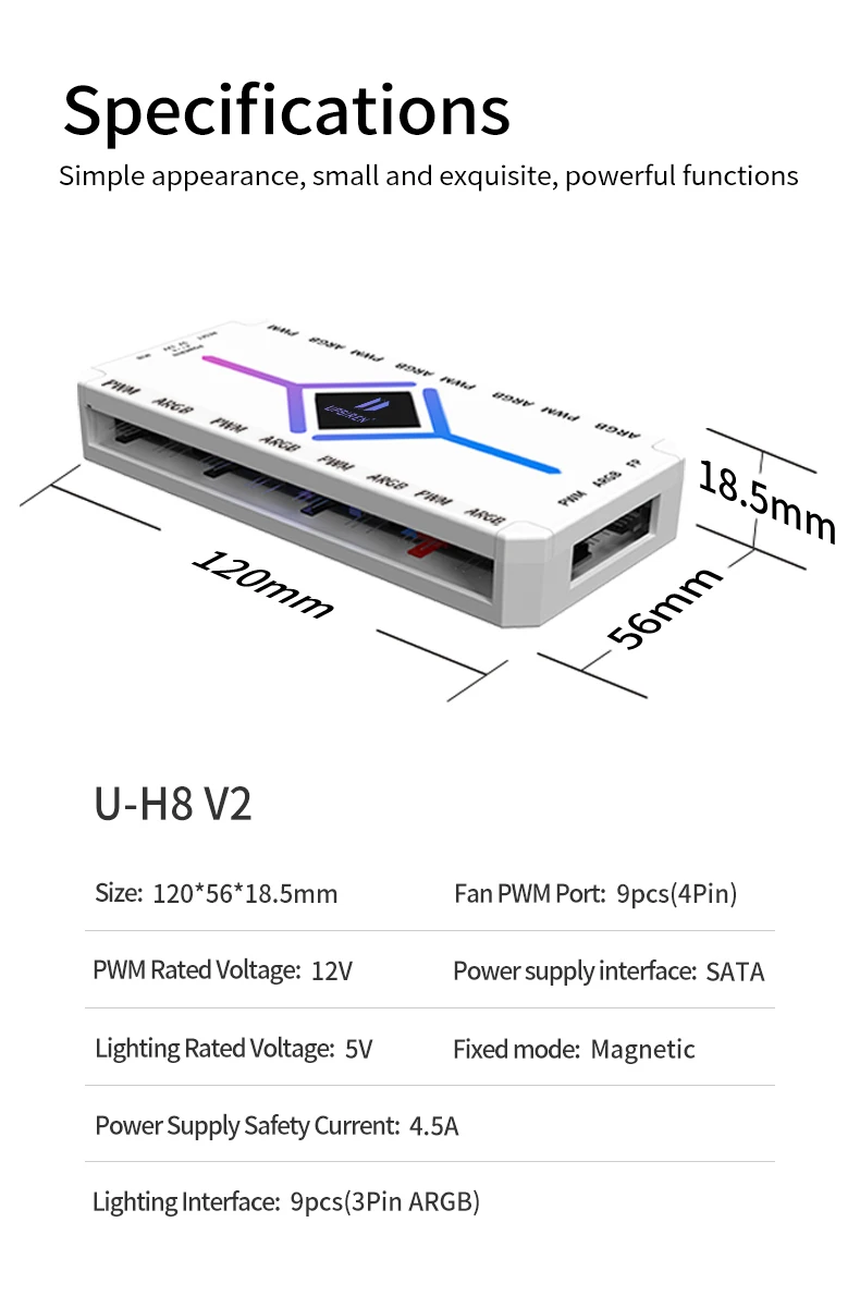 UPSIREN U-H8 ARGB/PWM HUB con controlador ARGB Adaptador HUB de ventilador 2 en 1
