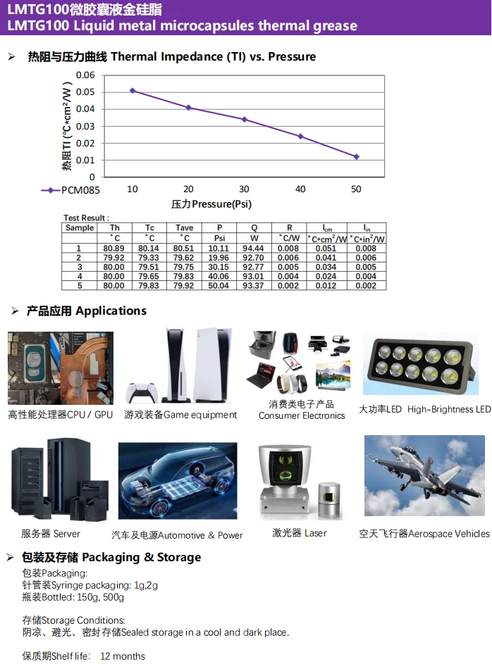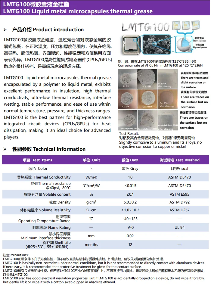 Más seguro, ocultamos el metal en las microcápsulas, por lo que en comparación con la grasa de silicona de metal líquido, estamos más seguros, y cuando el metal líquido entra en contacto con el aire, se oxidará con oxígeno y formará un óxido (óxido de galio u óxido de estaño, Porque los materiales principales del oro líquido son elementos dopantes y elementos de selenio), cuando los elementos metálicos se oxidan, se formará una película en la superficie, lo que conducirá a un aumento de la resistencia térmica, lo que afectará la conductividad térmica, colocamos el metal en las microcápsulas perfectamente para resolver este problema