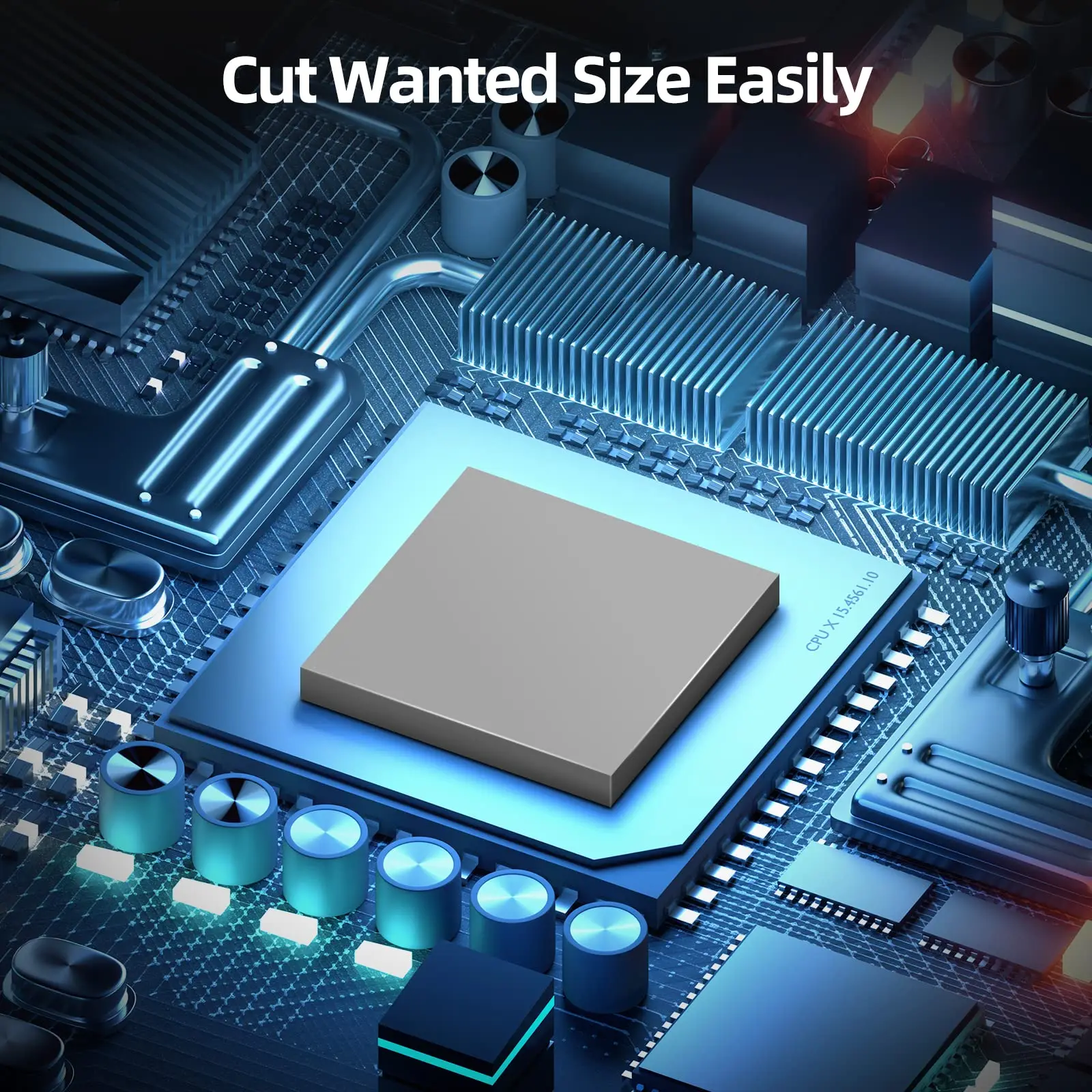 La conductividad térmica es la misma para cada espesor.Las almohadillas térmicas se pueden adquirir en varios espesores y tamaños.Los usuarios también pueden cortarlos al tamaño deseado.