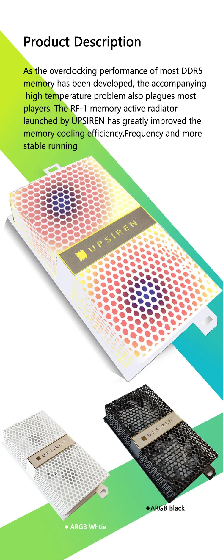 UPSIREN RF-1 Módulo de memoria ARGB Radiador de chaleco de enfriamiento activo Mejora la eficiencia de enfriamiento de la memoria diseñado para jugadores de overclocking