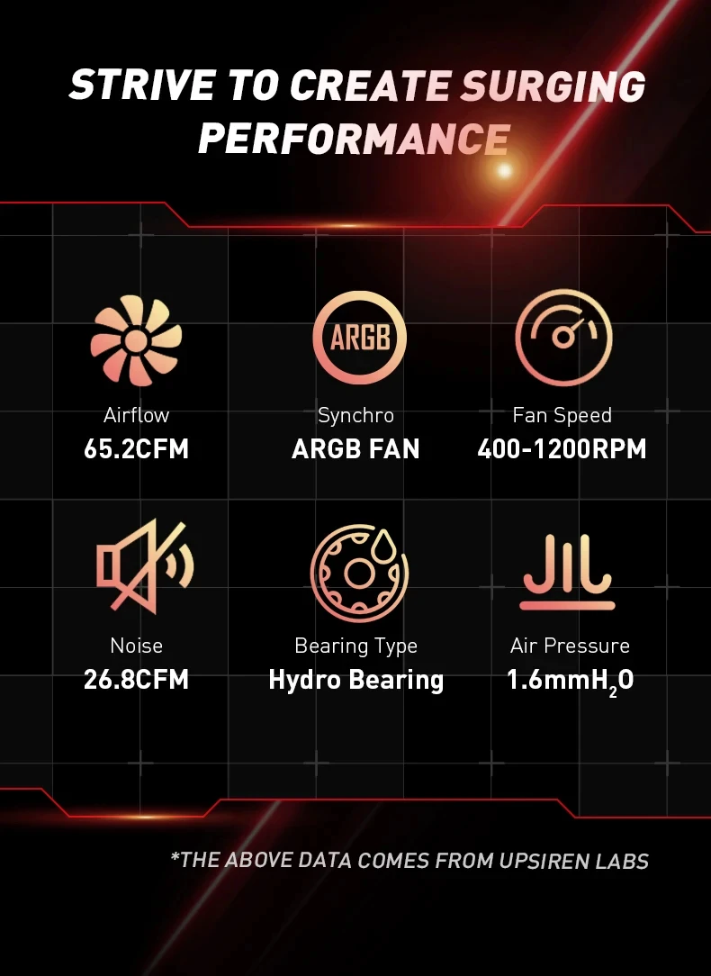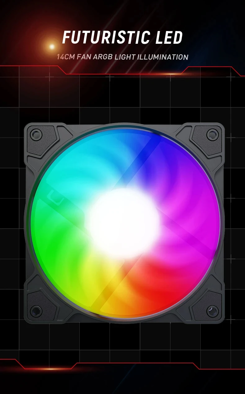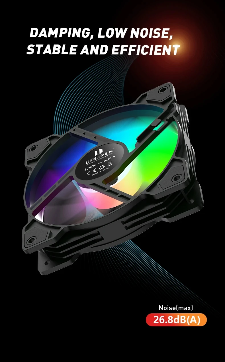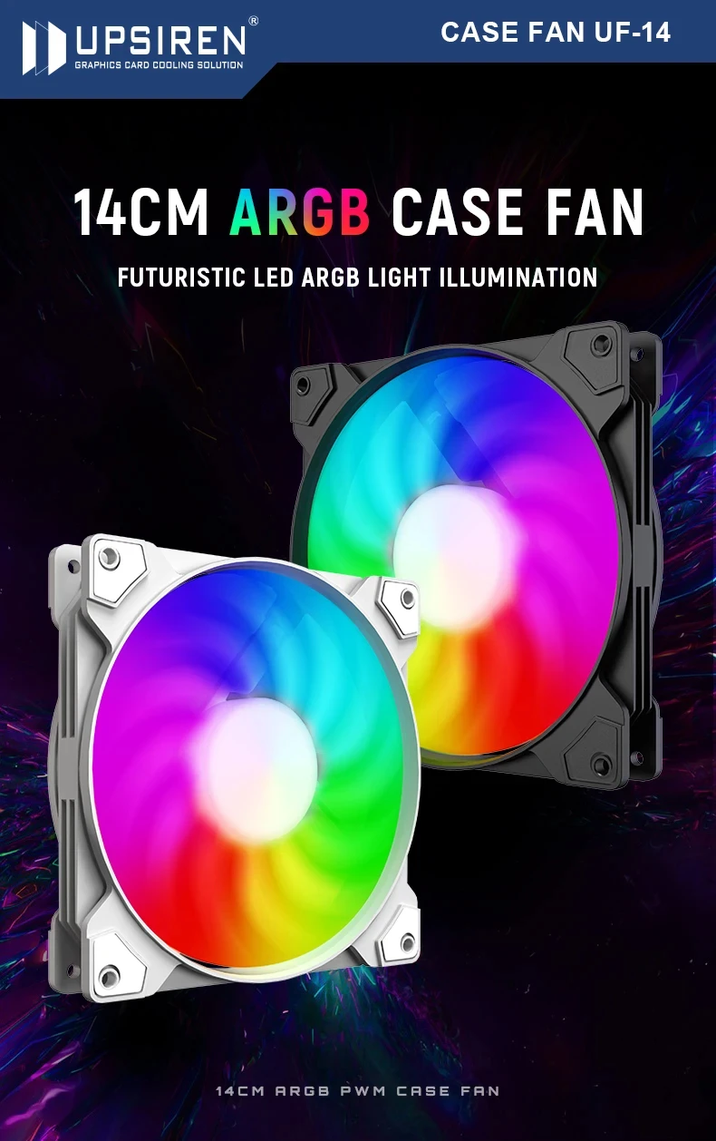 UPSIREN-ventilador de carcasa de 14cm, dispositivo de refrigeración silencioso de alto rendimiento con efecto de luz, 5V, 3 pines, ARGB y 4 pines PWM, UF-14