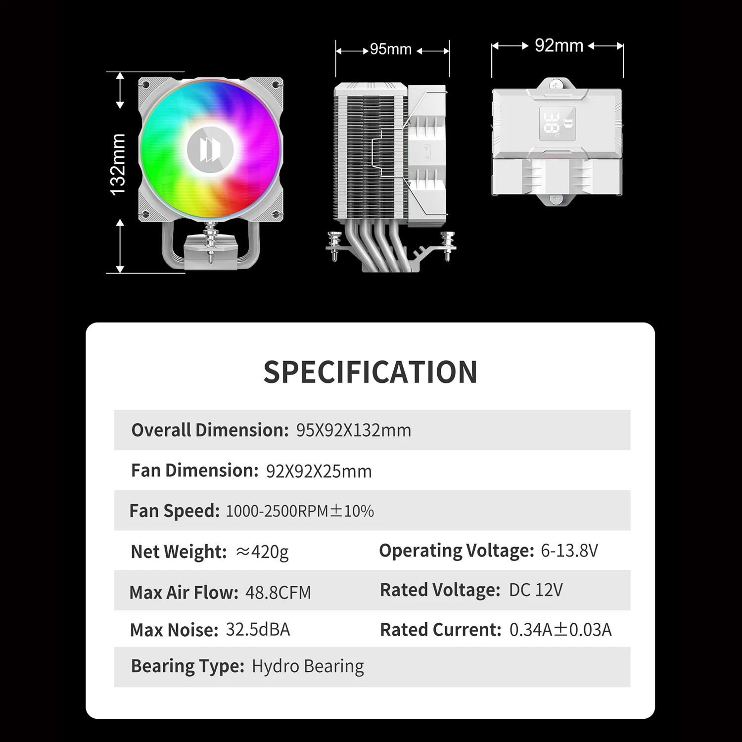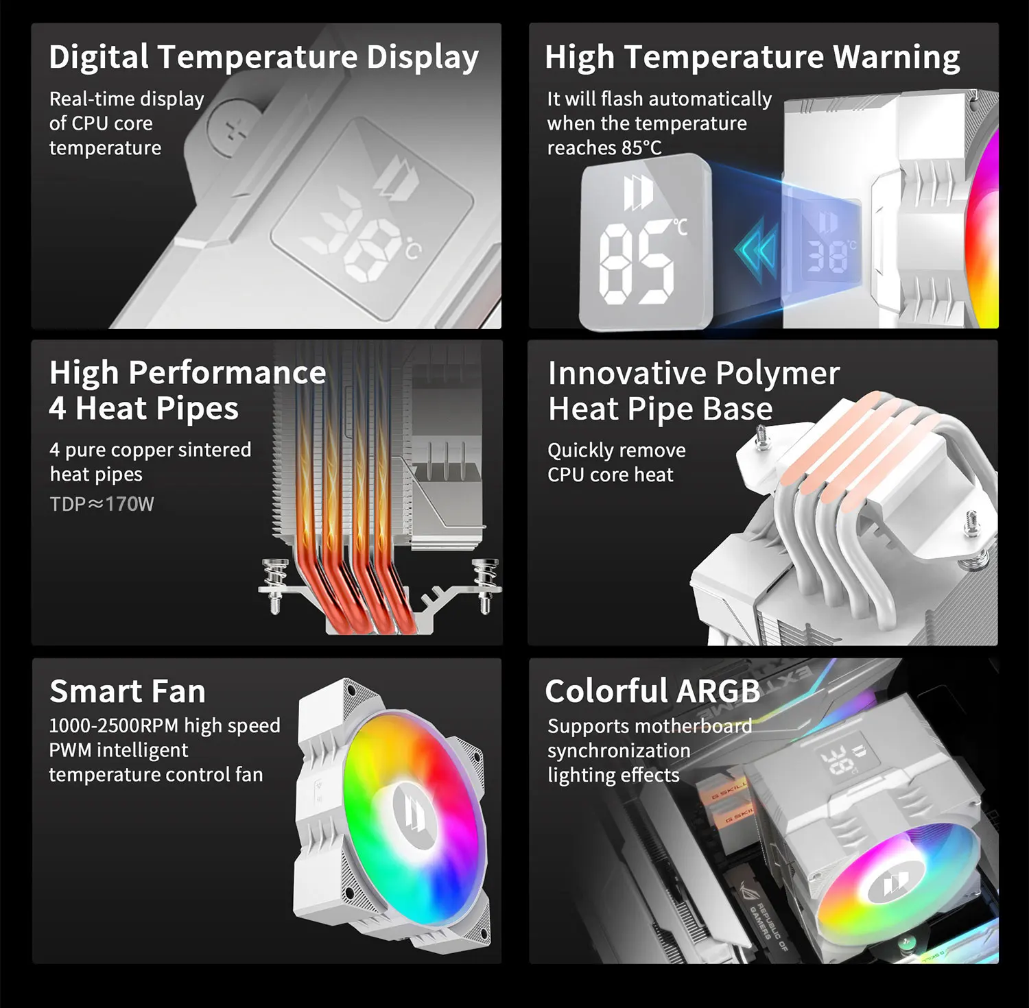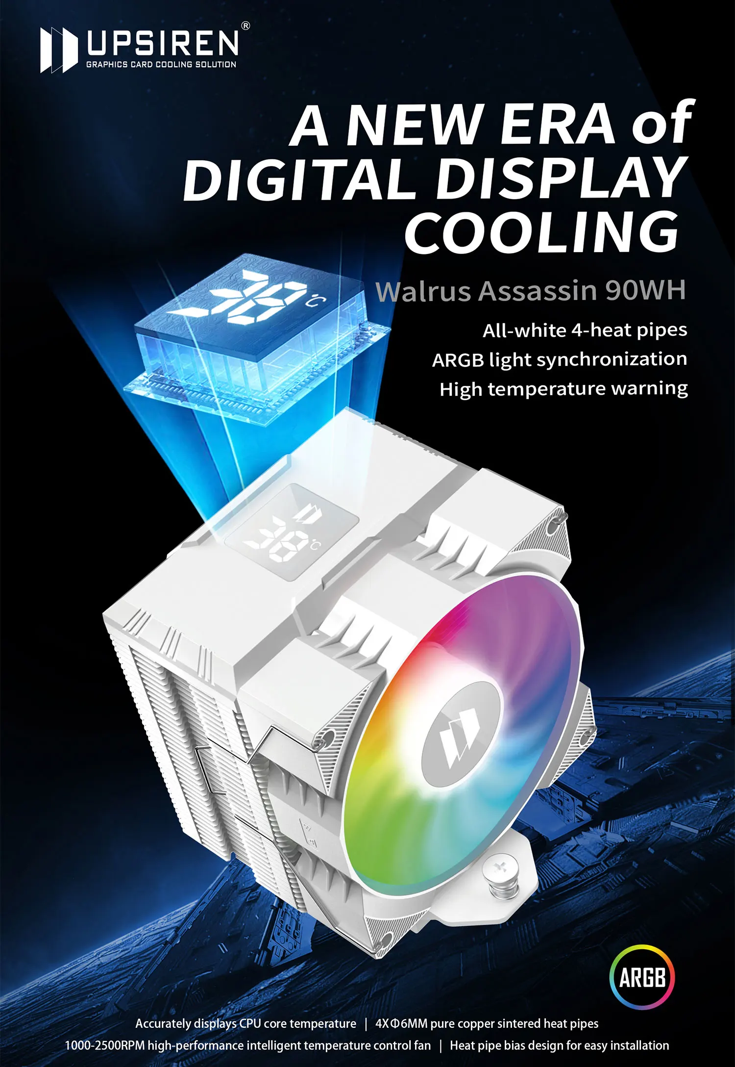 Comprar UPSIREN Walrus Assassin 90 4 enfriador de aire de una sola torre con pantalla de temperatura ventilador ARGB PWM de 9CM compatible con LGA1700 AMDAM5