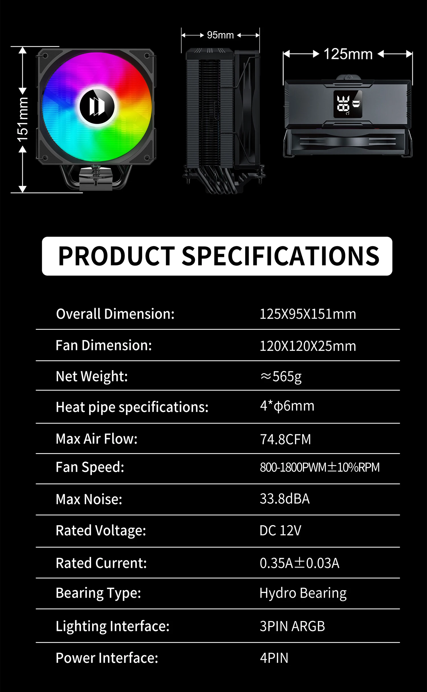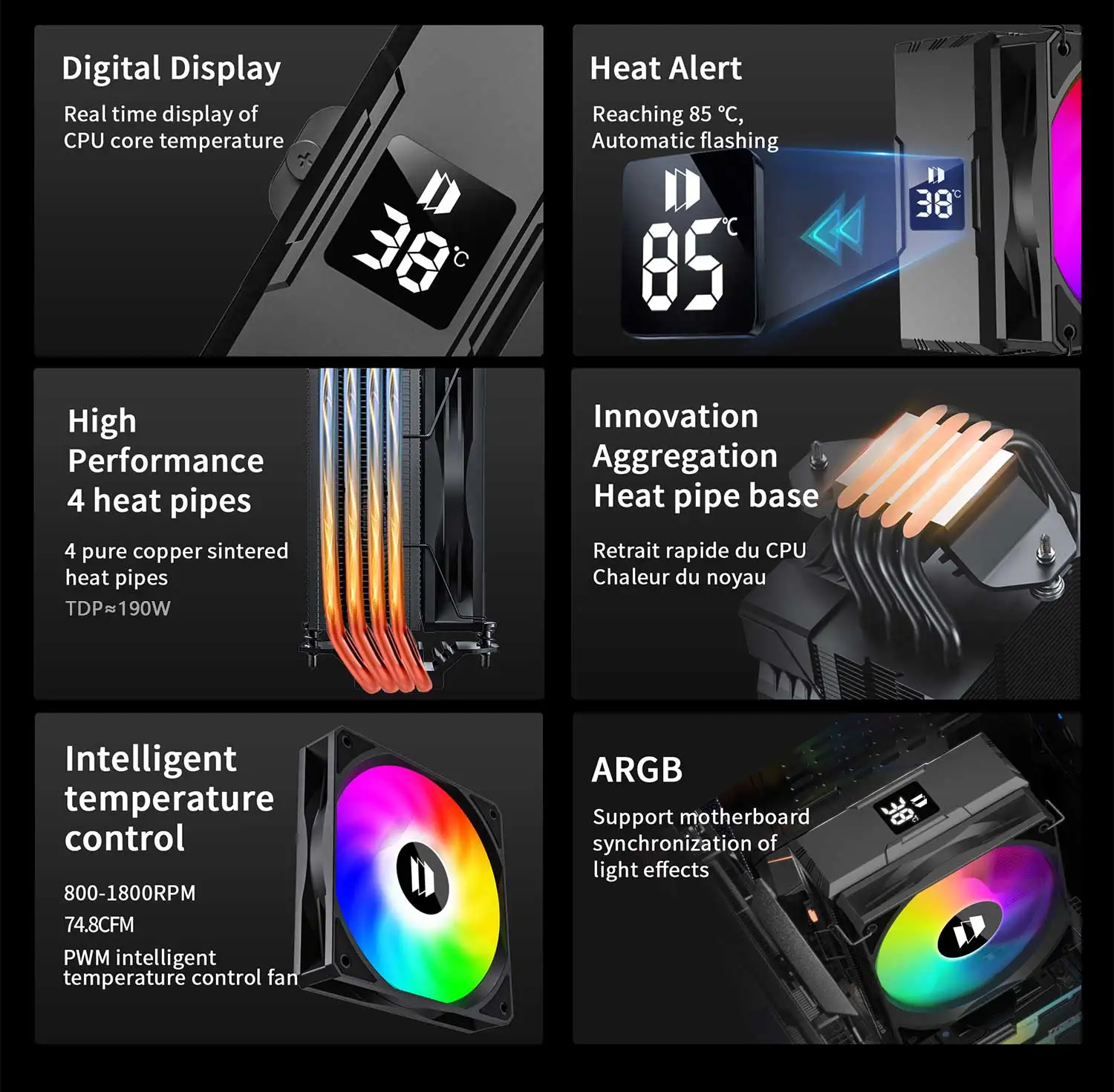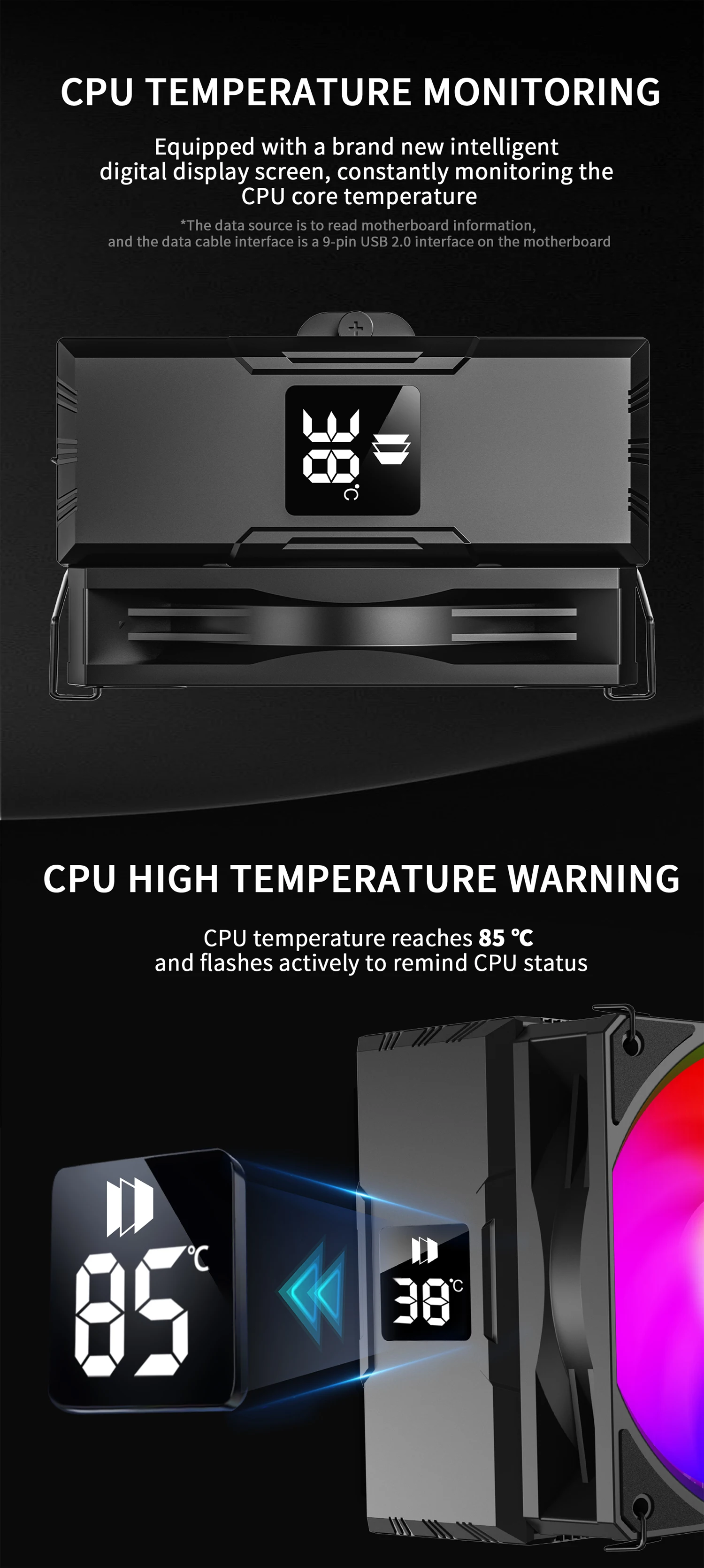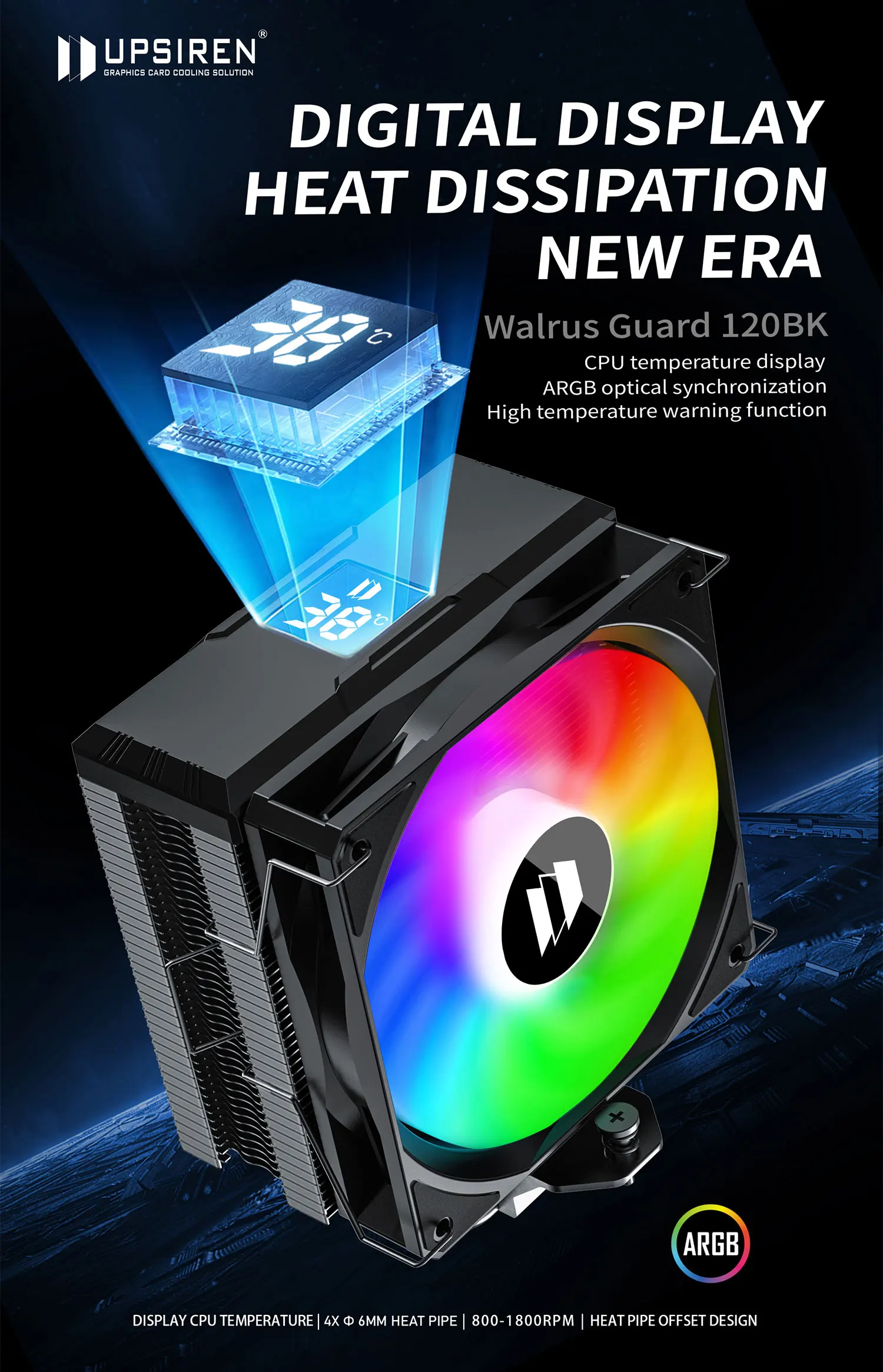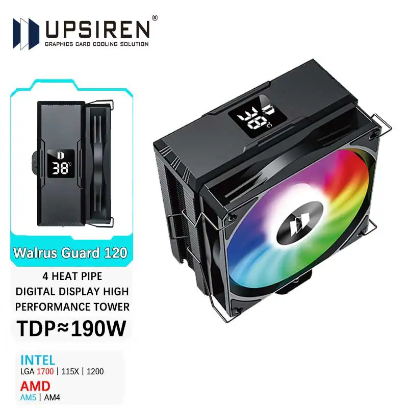 Comprar UPSIREN Walrus Guard 120 pantalla Digital 4 Heatpipe CPU Cooler 120mm ventilador de refrigeración radiador enfriador de aire para LGA1700/1200 AM4 AM5