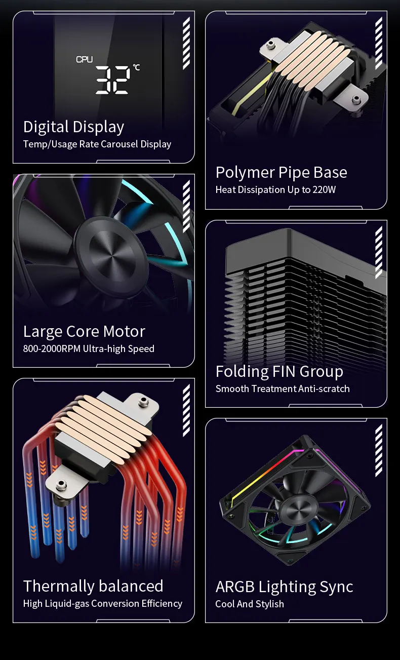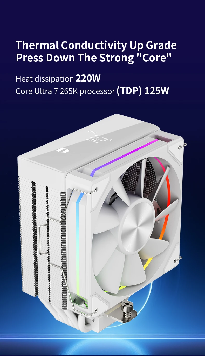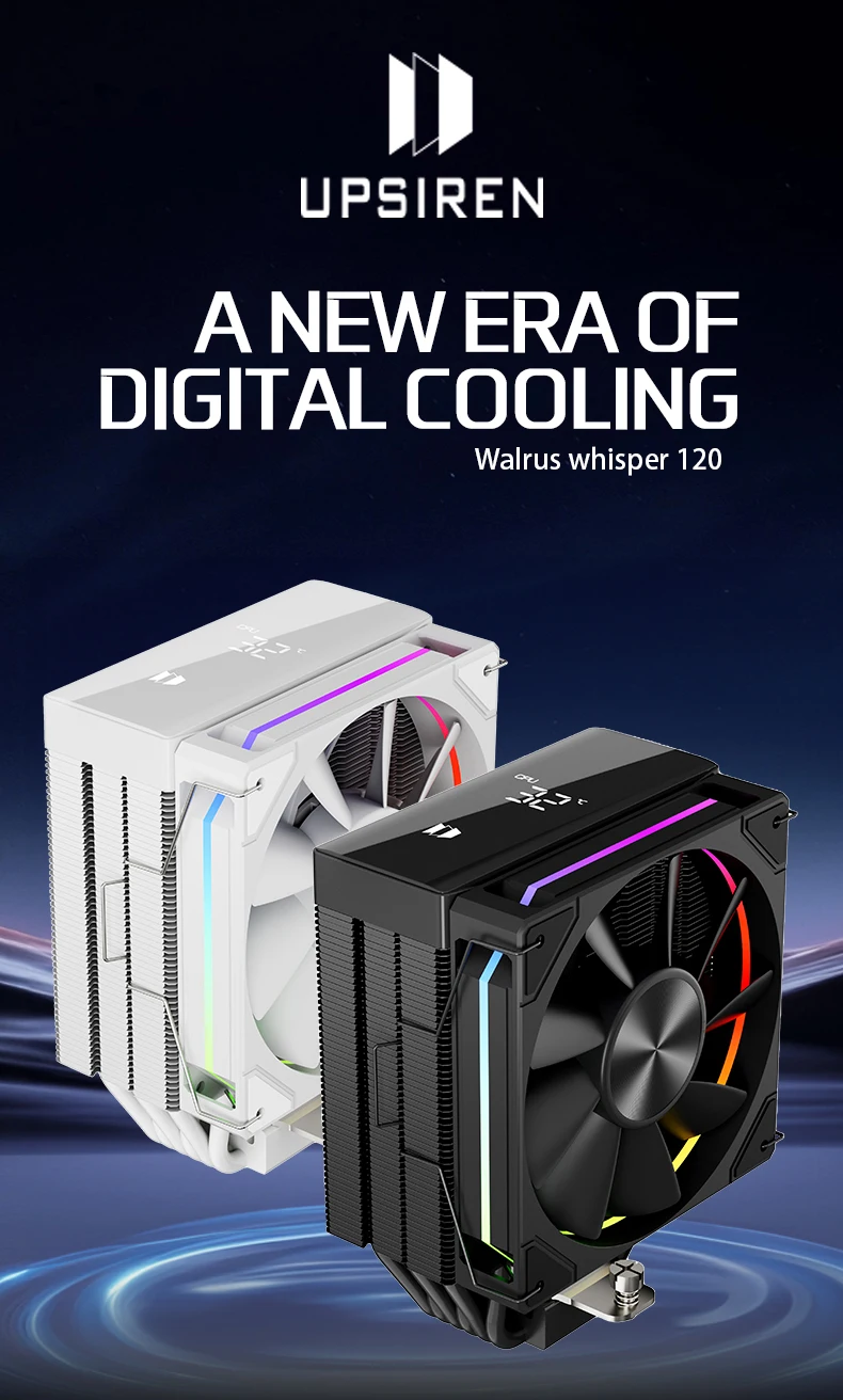 UPSIREN Walrus Whisper 120 radiador de refrigeración de aire del chasis con pantalla Digital, 6 tubos de calor, compatible con LGA1851/1700/115X/1200/AM5/AM4