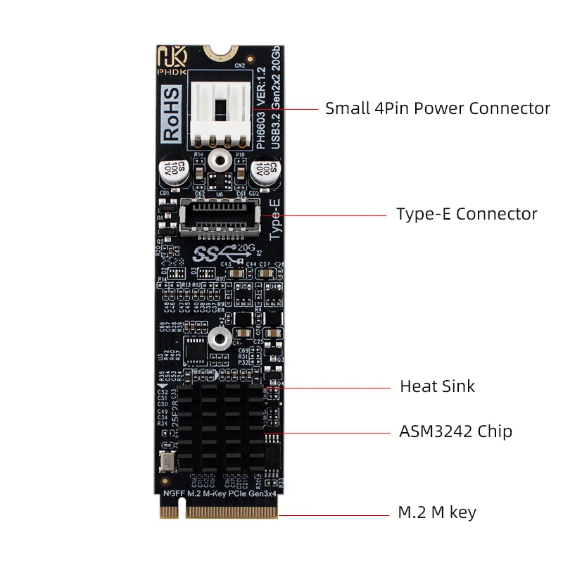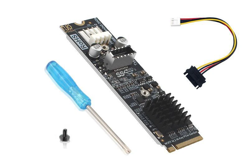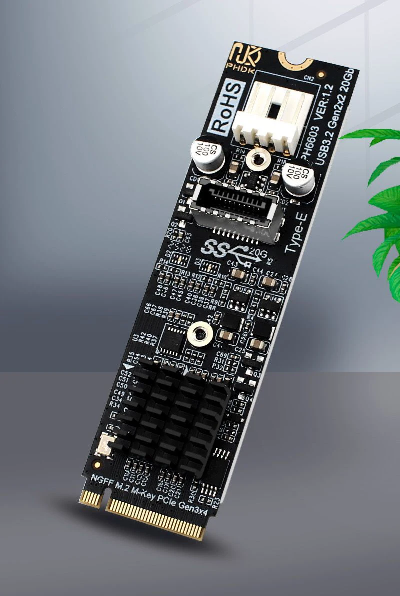 USB 3, 3, 3, 20 Gbps tipo E, conector de Panel frontal a M.2 M-key NVME PCIE, tarjeta elevadora de expansión para placa base