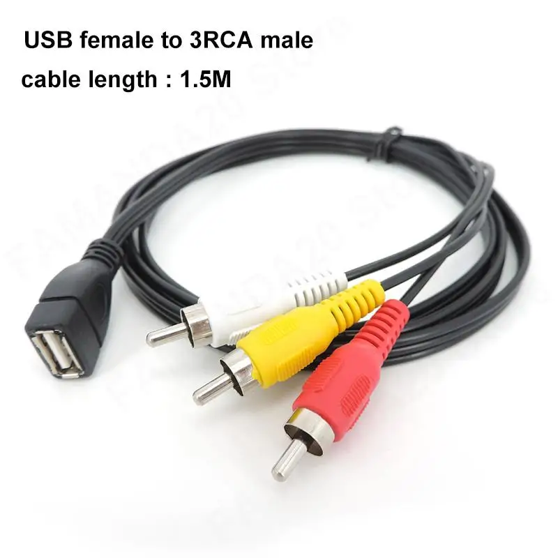 USB A 2.0 hembra macho a 2 3 Rca 2/3RCA macho hembra AV adaptador conector convertidor Cable PC TV HDTV AUX Audio Video