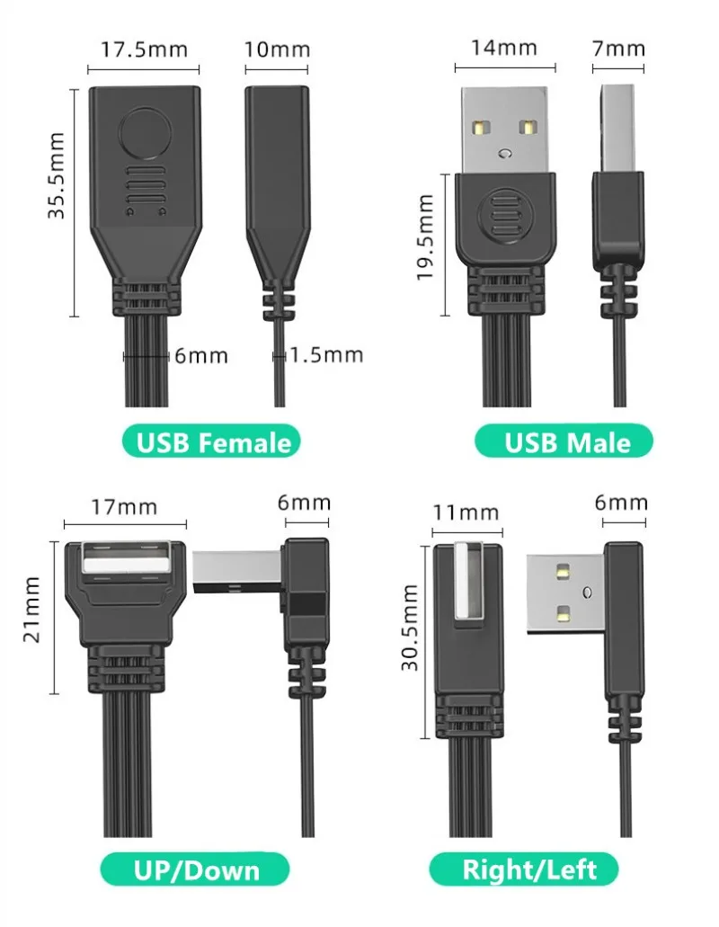 Características:Cable de datos USB 2.0 con codo/cabeza recta, línea de extensión de conectores macho doble macho a macho.Admite carga de 2 A y transmisión de datos de 480 Mbps.El diseño envolvente integrado del cuerpo del cordón, junta reforzada y no es fácil de romper.Hay 5 direcciones diferentes para elegir y 6 longitudes diferentes para elegir, que van desde 5,0 cm hasta 100 cm.Adecuado para dispositivos electrónicos con diversas interfaces USB hembra, como teléfonos móviles, fuentes de alimentación móviles, consolas de juegos, ratones, teclados y más.Especificaciones:Material: PVCTipo: derecha, izquierda, abajo, arriba, cabeza recta (opcional)Longitud: 5,0 cm, 10 cm, 15 cm, 30 cm, 50 cm, 100 cm (opcional)Tamaño: 5,0 cm/1,96", 10 cm/3,93", 15 cm/5,90", 30 cm/11,8", 50 cm/19, 6", 100 cm/3,28 piesCalibre de cable: 24AWGEl paquete incluye:1 cable de datos USB 2.0 macho a macho.