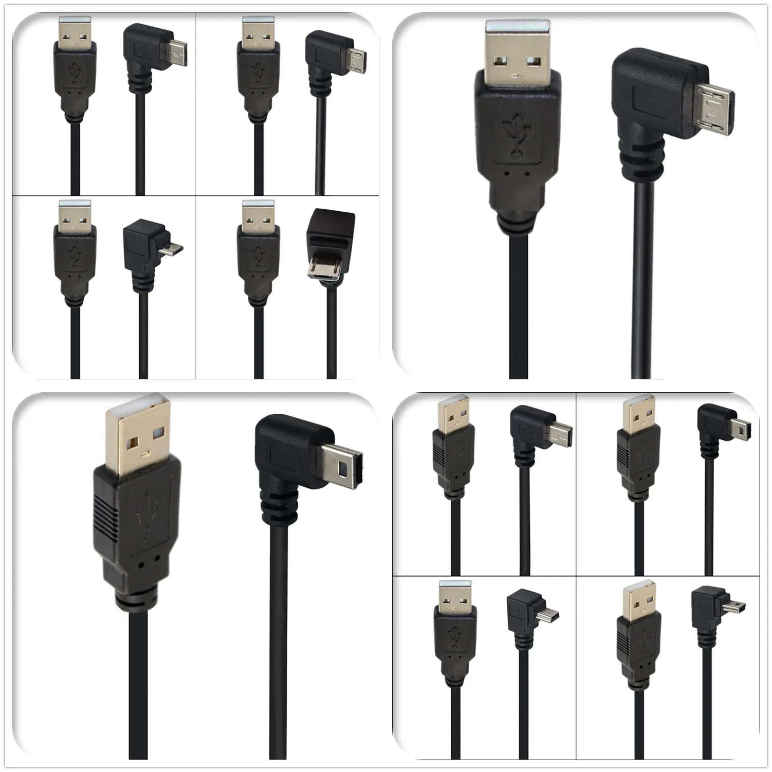 Comprar USB 2,0 macho a Mini USB arriba abajo izquierda derecha ángulo 90 grados Cable tipo A a Micro USB 0,25 m 0,5 m 1,5 m 3m para cámara MP4 Tablet
