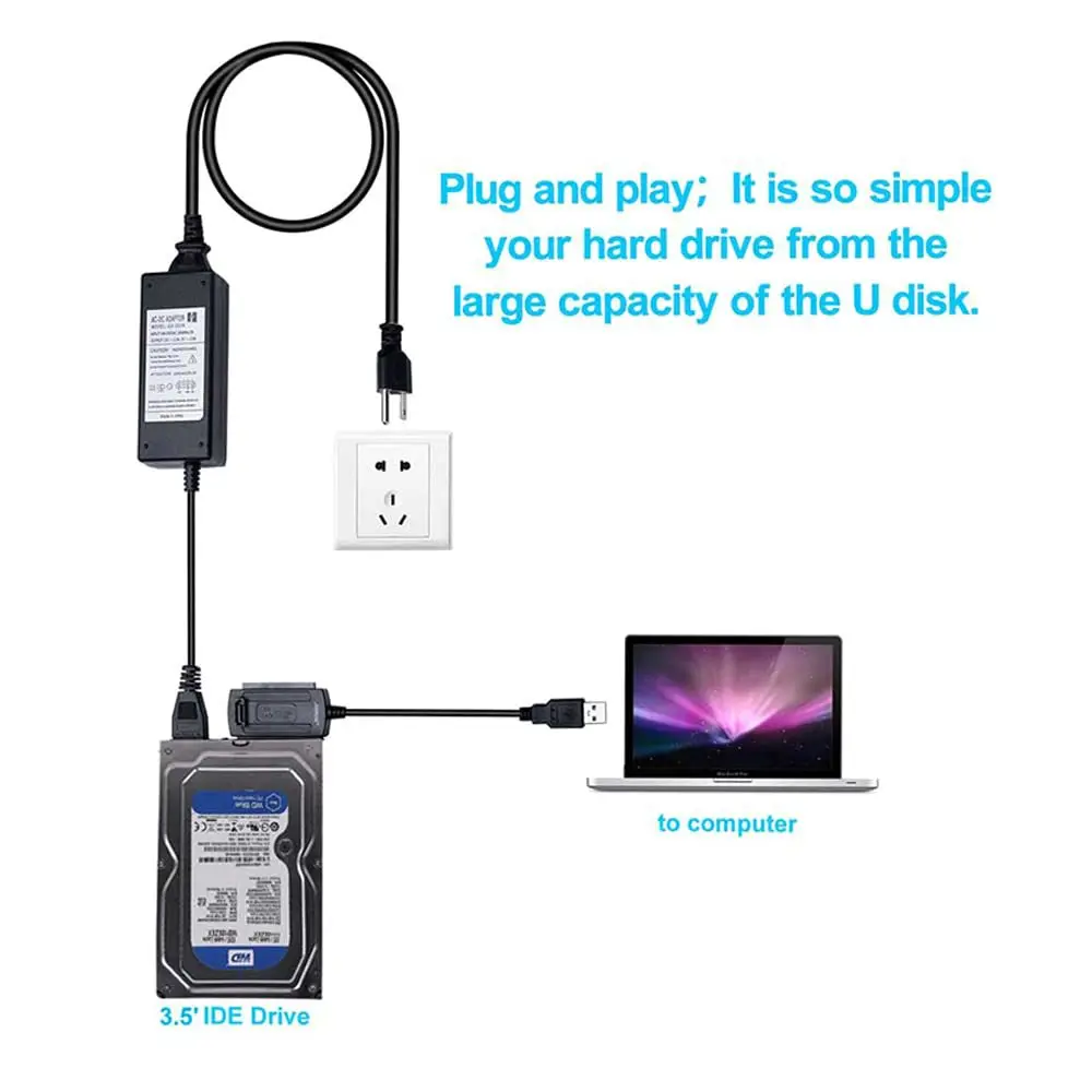 USB 2.0 a IDE/SATA Cable adaptador de tres usos USB 2.0 a IDE Easy Drive Cable