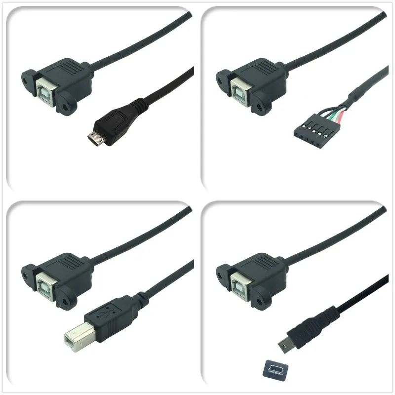 Comprar USB 2,0 B macho a USB B hembra para impresora, montaje en Panel a Micro Mini USB, Cable de extensión de 2,54mm, Conector de agujero de tornillo de grado