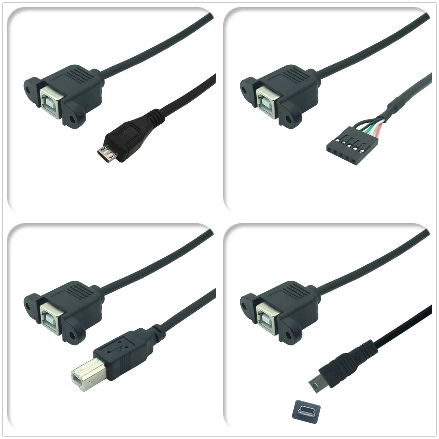 USB 2,0 B macho a USB B hembra para impresora, montaje en Panel a Micro Mini USB, Cable de extensión de 2,54mm, Conector de agujero de tornillo de grado