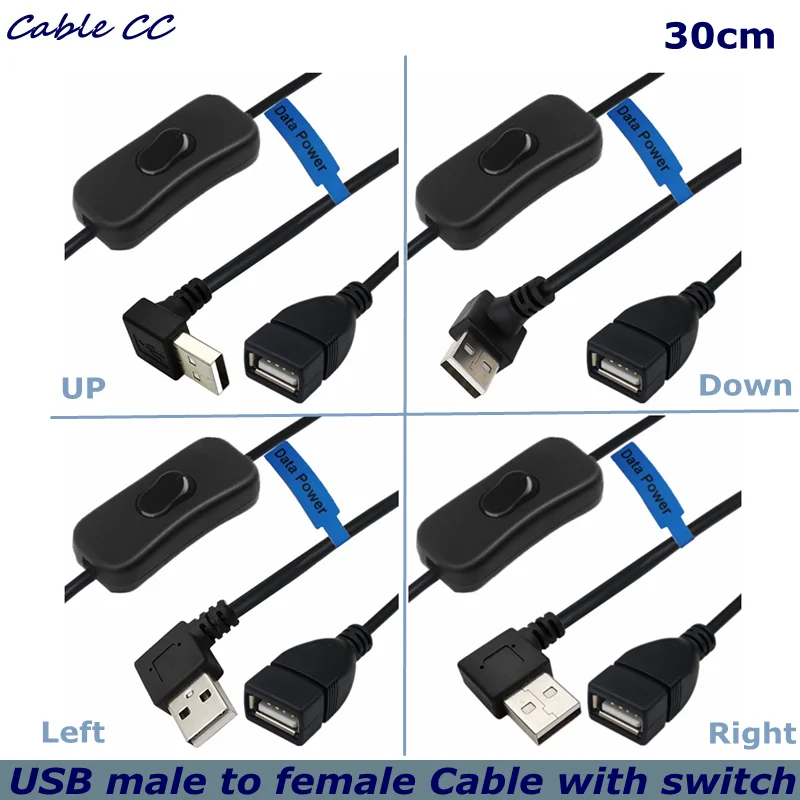 Comprar USB 2,0 macho a hembra con Cable de extensión de interruptor 303 para ordenador, teléfono móvil, dispositivo de cámara de salpicadero, ángulo de 90 grados, 30cm