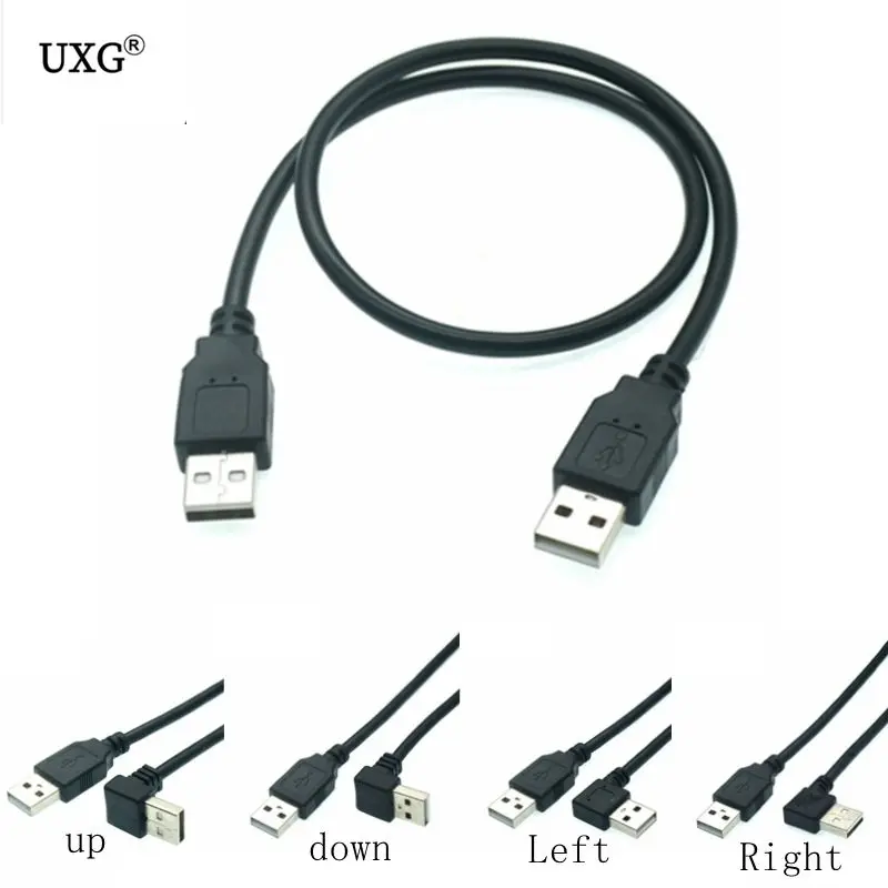 Comprar USB 2,0 macho a USB 2,0 macho 90 grados izquierda/derecha/arriba/abajo adaptador de ángulo Cable de extensión USB2.0 macho a macho 25cm