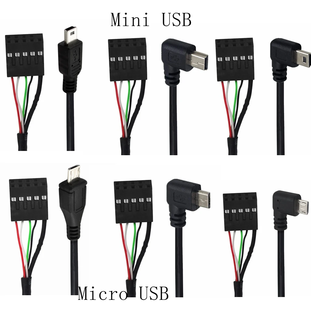 Comprar USB 2,0 Micro 5 pines/Mini 5 pines macho a 9 pines hembra 2,54 cabezal USB PCB Cable de placa base ángulo izquierdo/derecho Cable de 9 pines 50CM