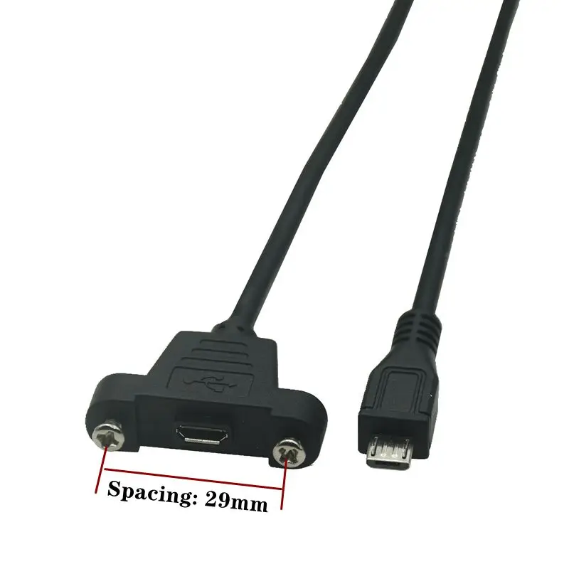 Micro-USB 5pin Micro USB 2,0 conector macho a Micro USB 2,0 Cable de extensión hembra 30cm 50cm con agujero de montaje en panel.