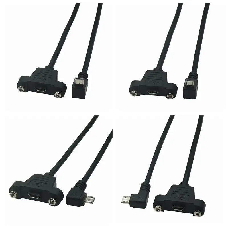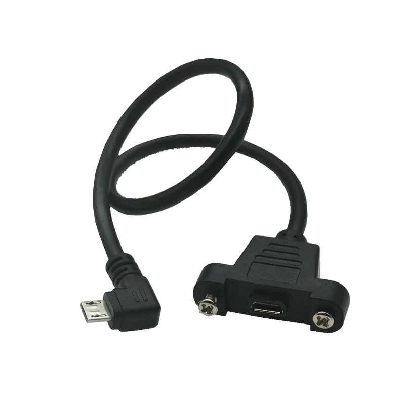 Comprar USB 2,0 micro-usb 5 pines Arriba/Abajo izquierda derecha conector macho a hembra Cable de extensión 30cm 50cm con tornillos agujero de montaje en Panel