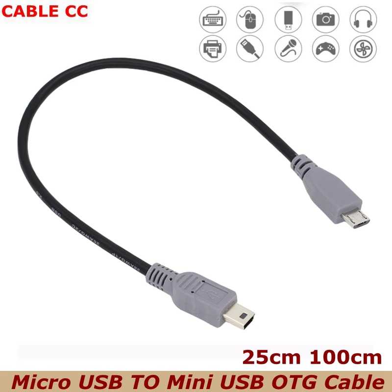 Comprar USB 2,0 Micro USB a Mini USB macho OTG Cable de datos para teléfono móvil tableta Disco Duro móvil 25cm 100cm