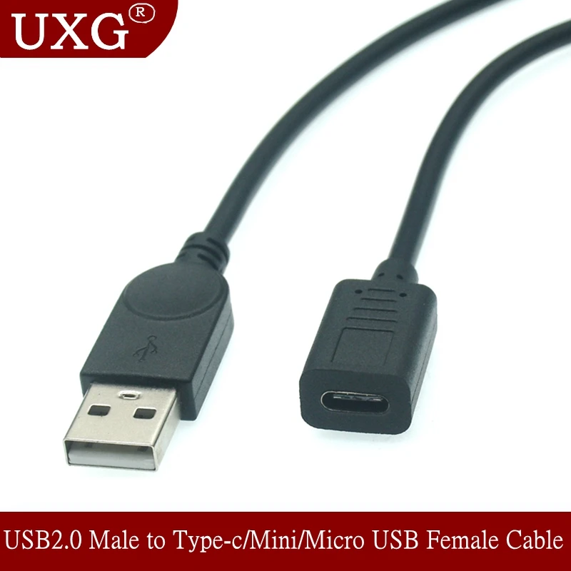 Comprar USB 2,0 tipo A macho A tipo c, USB-C, USB 3,1, Mini Micro USB tipo B, conector hembra de 5 pines, Cable de extensión de datos de carga de 25cm