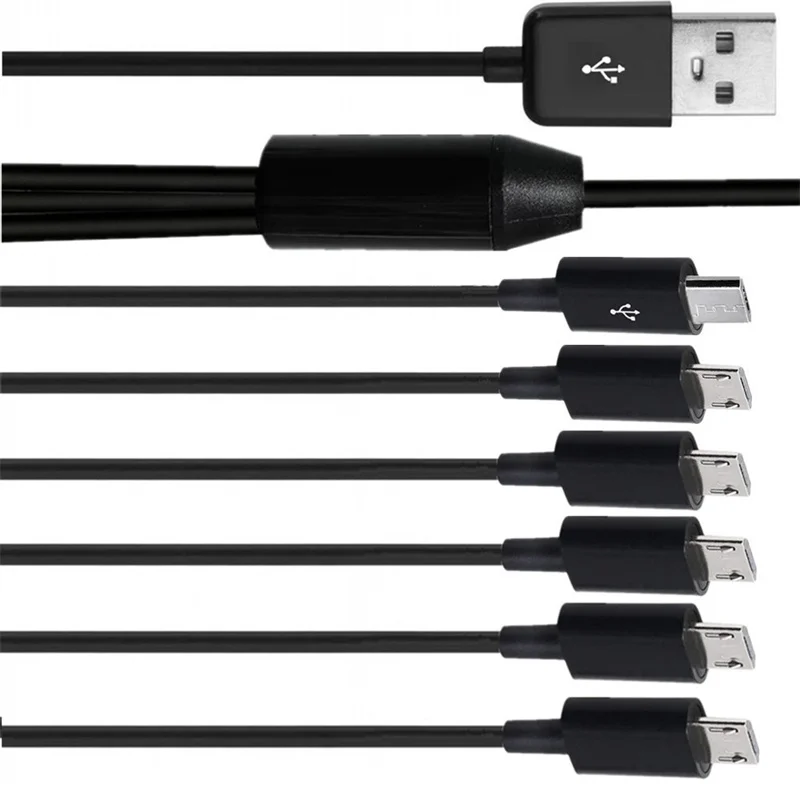 Nota: solo una línea de datos USB con marca de transmisión admite transmisión y carga simultáneas, y los otros 5 micro USB solo se utilizan para cargar, sin función de transmisión de datos.