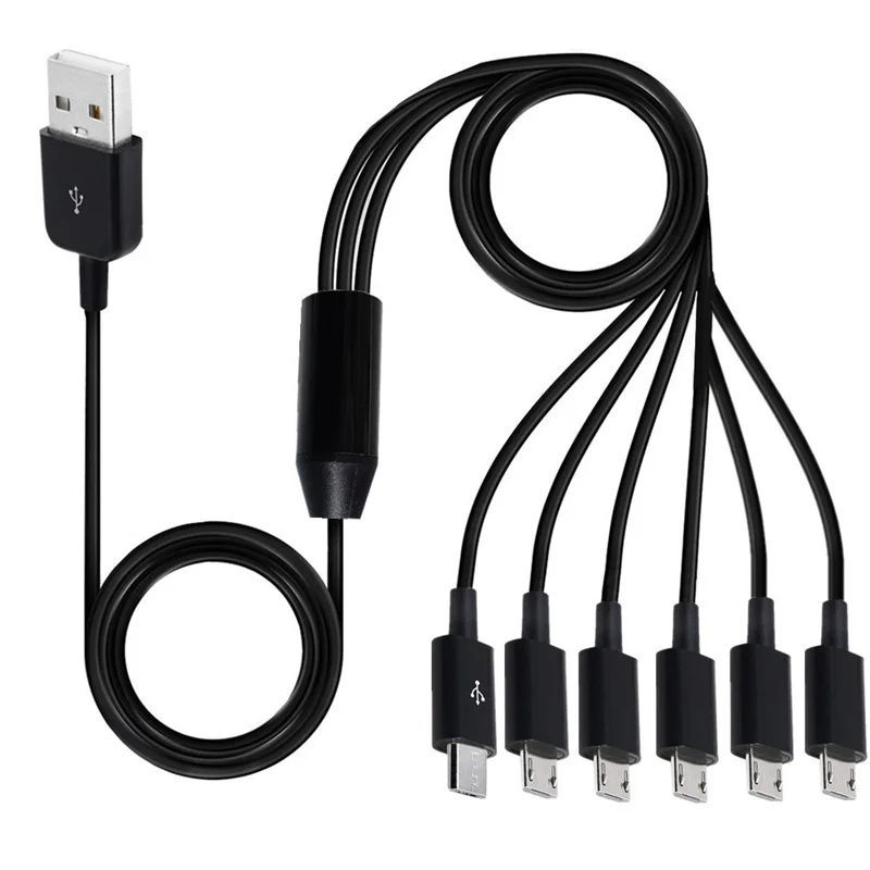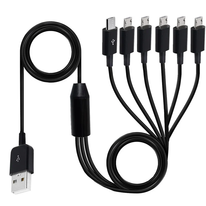 Comprar USB 2.0 tipo A macho a 6 Micro USB 5 pines macho divisor Y sincronización de datos y conector de carga Cable adaptador 0,5 m/1,5 m negro