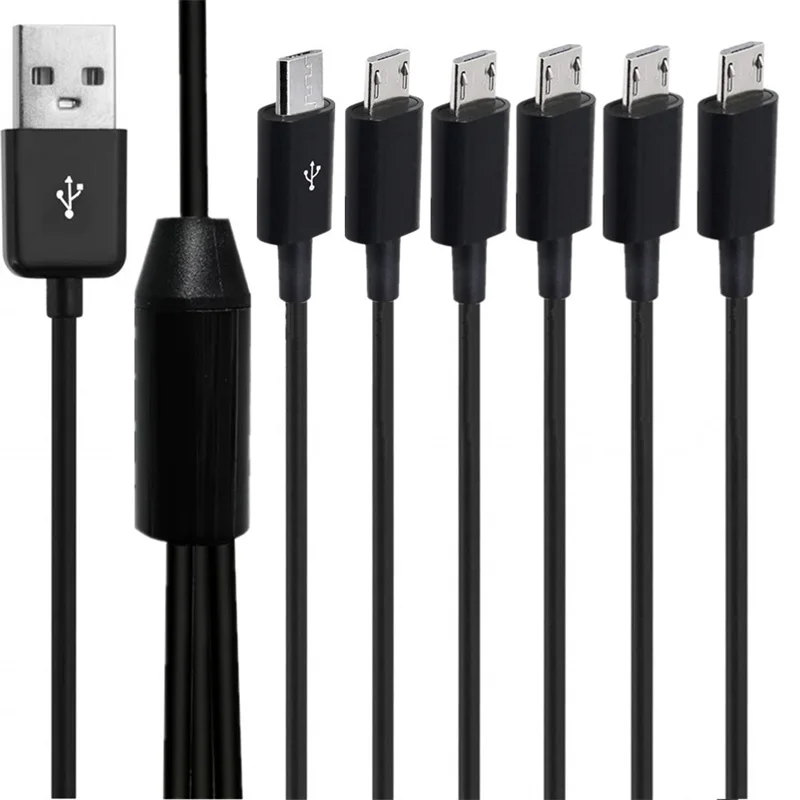 USB 2.0 tipo A macho a 6 Micro USB 5 pines macho divisor Y sincronización de datos y conector de carga Cable adaptador 0,5 m/1,5 m negro