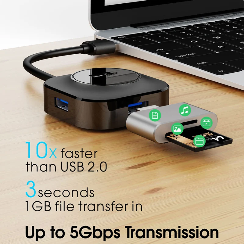 USB 3.0 2.0 HUB 4 Ports USB Cable Splitter USB Disk Card Reader Keyboard Mouse Extend Connector Laptop Computer Phone Tablet Charging Dock Adapter