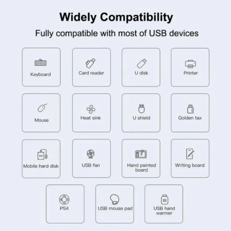 Características: 1.Plug and play, fácil de instalar. 2. Diseño de interfaz USB razonable, puede admitir cuatro dispositivos USB de alta velocidad simultáneamente 3.USB 3.0, 10 veces más rápido que USB 2.0, velocidad de transferencia de hasta 5 Gbps.Compatible con especificaciones USB 2.0 y 1.1. 4. Admite voltaje de sobrecarga y función de protección entre corrientes, puede proteger eficazmente el equipo conectado y el propio HUB cuando se energiza repentinamente. 5. Diseño de interfaz inclinada ergonómica, consideraciones de tecnología humanizada. 6.Rendimiento estable, duradero y confiable.