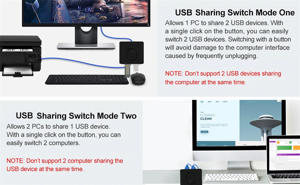 Estos conmutadores USB permiten que dos computadoras compartan 1 dispositivo USB o una computadora para compartir 2 dispositivos USB.Y con el conmutador USB, no necesitará cambiar constantemente cables ni configurar un complicado software compartido de dispositivos USB.
