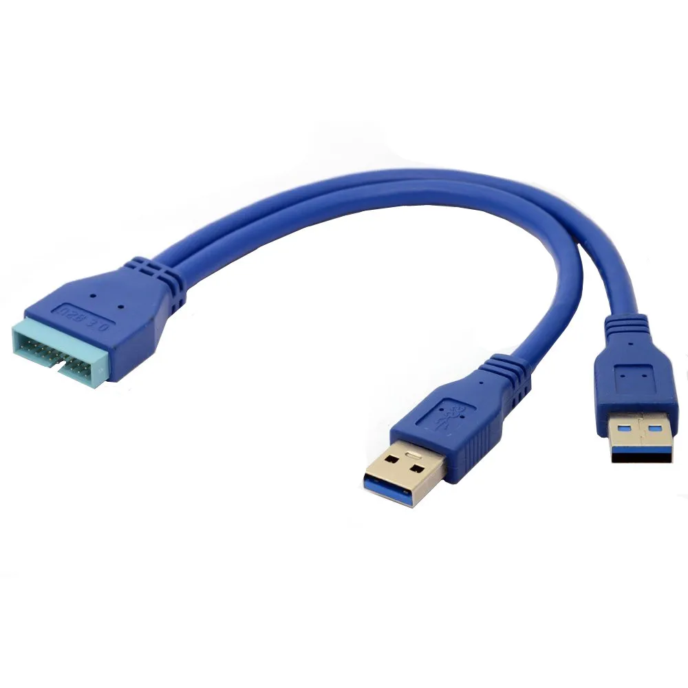 USB 3.0 2 puertos tipo A macho a conector macho de 20 pines Cable adaptador 0,25 m