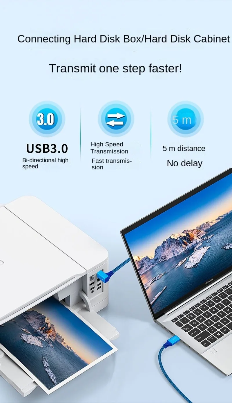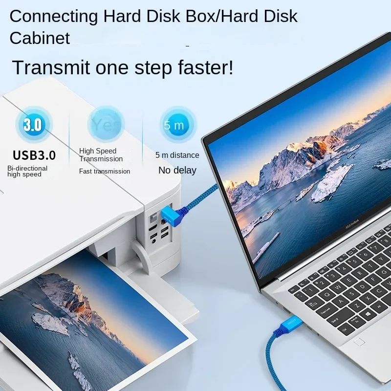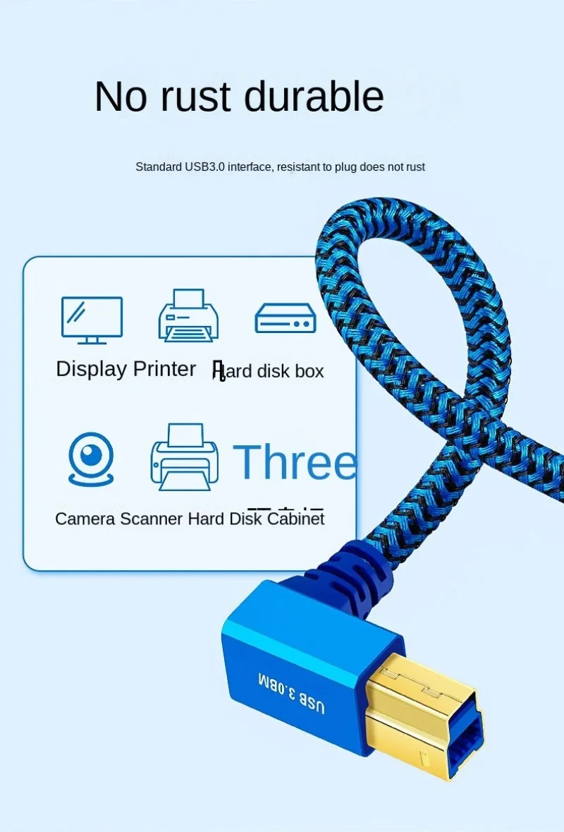 Comprar USB 3,0 A macho a ángulo recto de 90 grados USB3.0 tipo B Cable macho AM/BM Cable de impresora de alta velocidad 0,5 m/1m/2m/3m