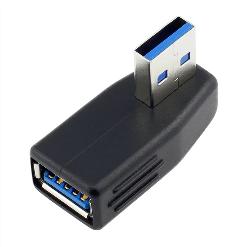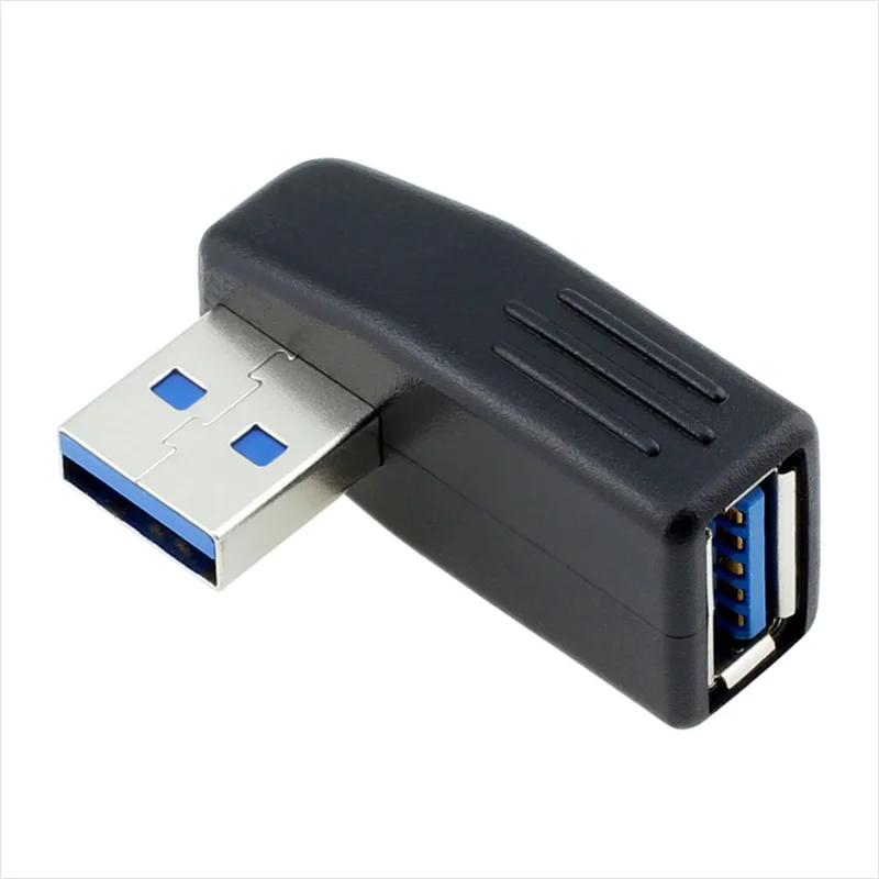 Adaptador de conector USB 3.0 macho a hembra de ángulo recto de 90 grados