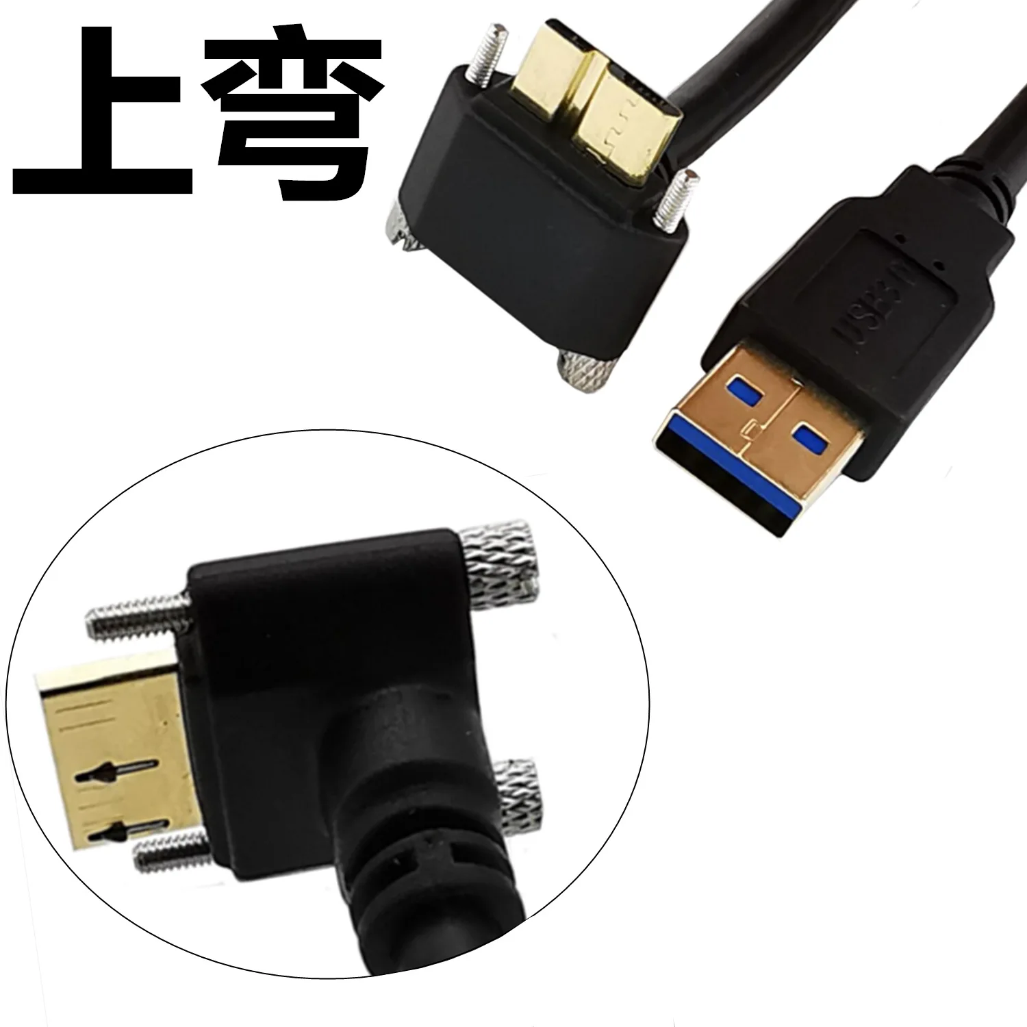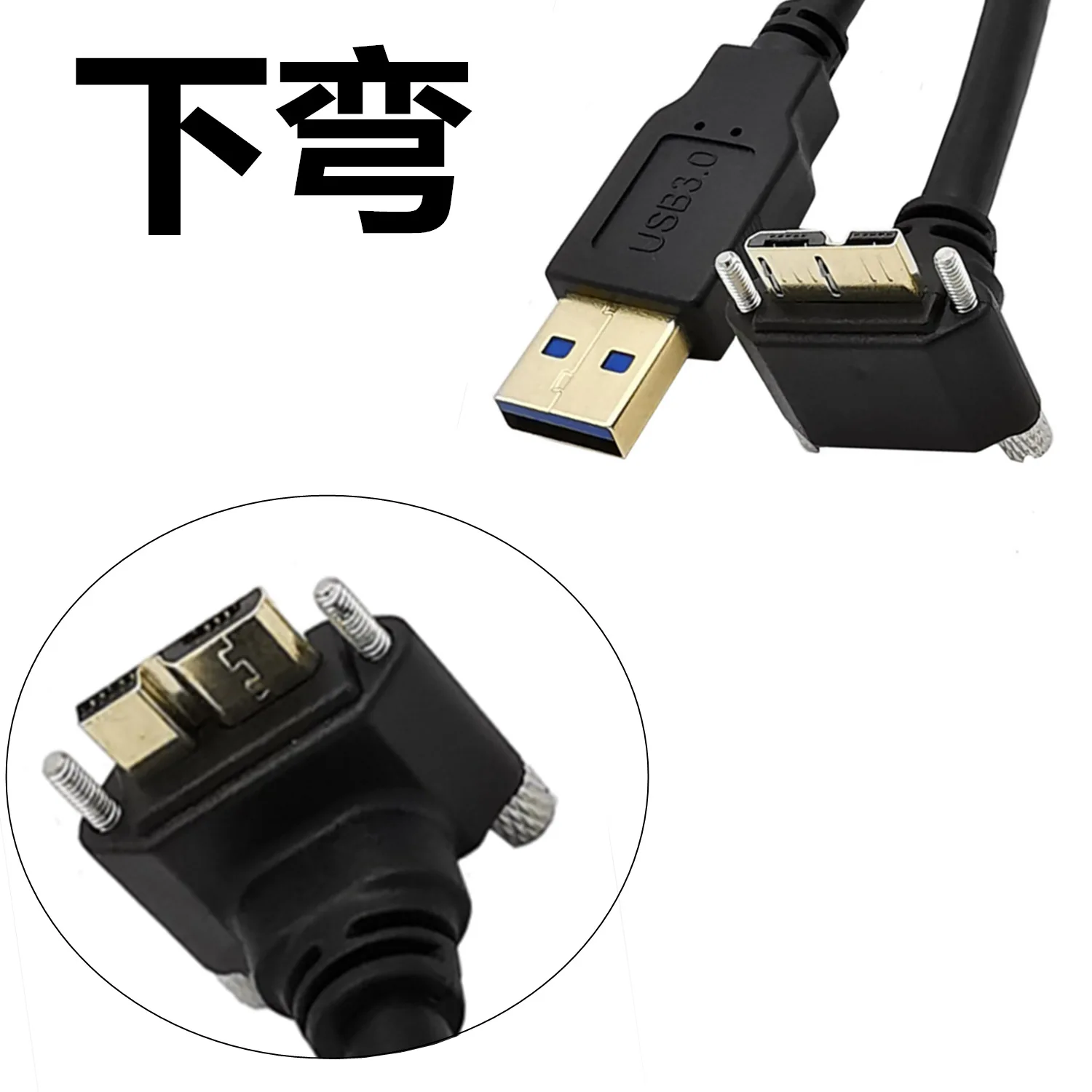 Comprar USB 3,0 chapado en oro a 90 grados, Micro B con tornillos de bloqueo, cable de datos de montaje, 0,3 M, 1M, 1,8 M, 3M