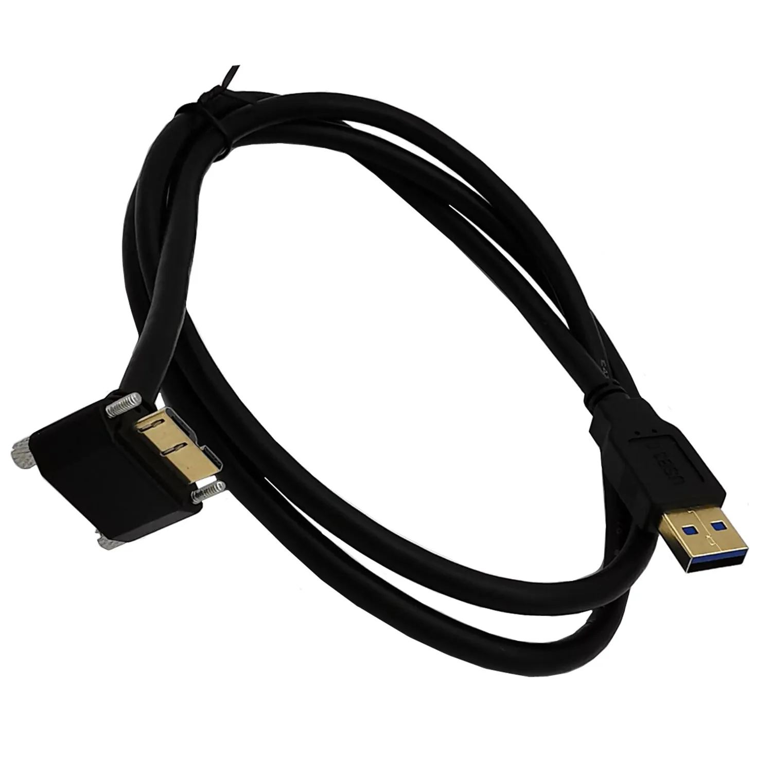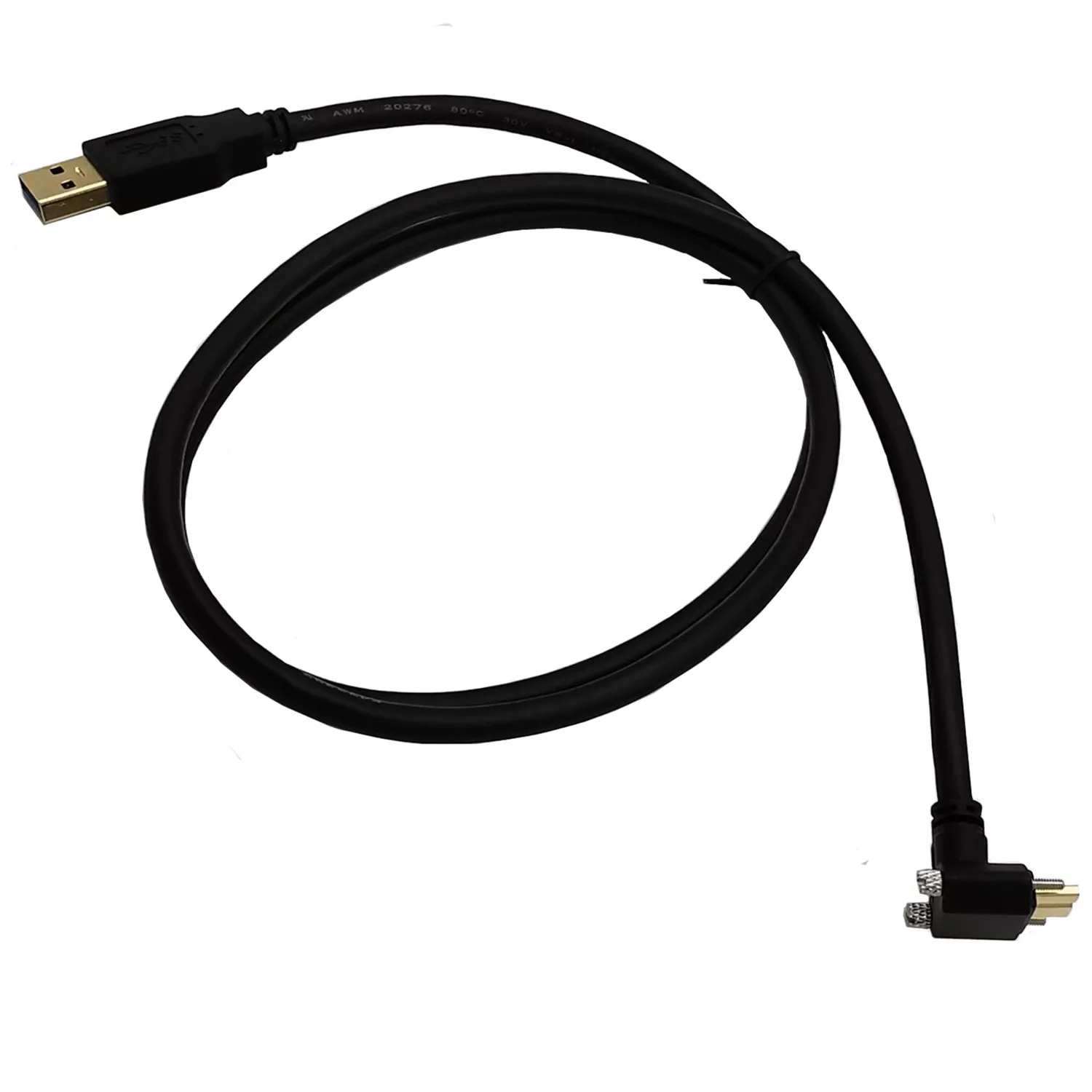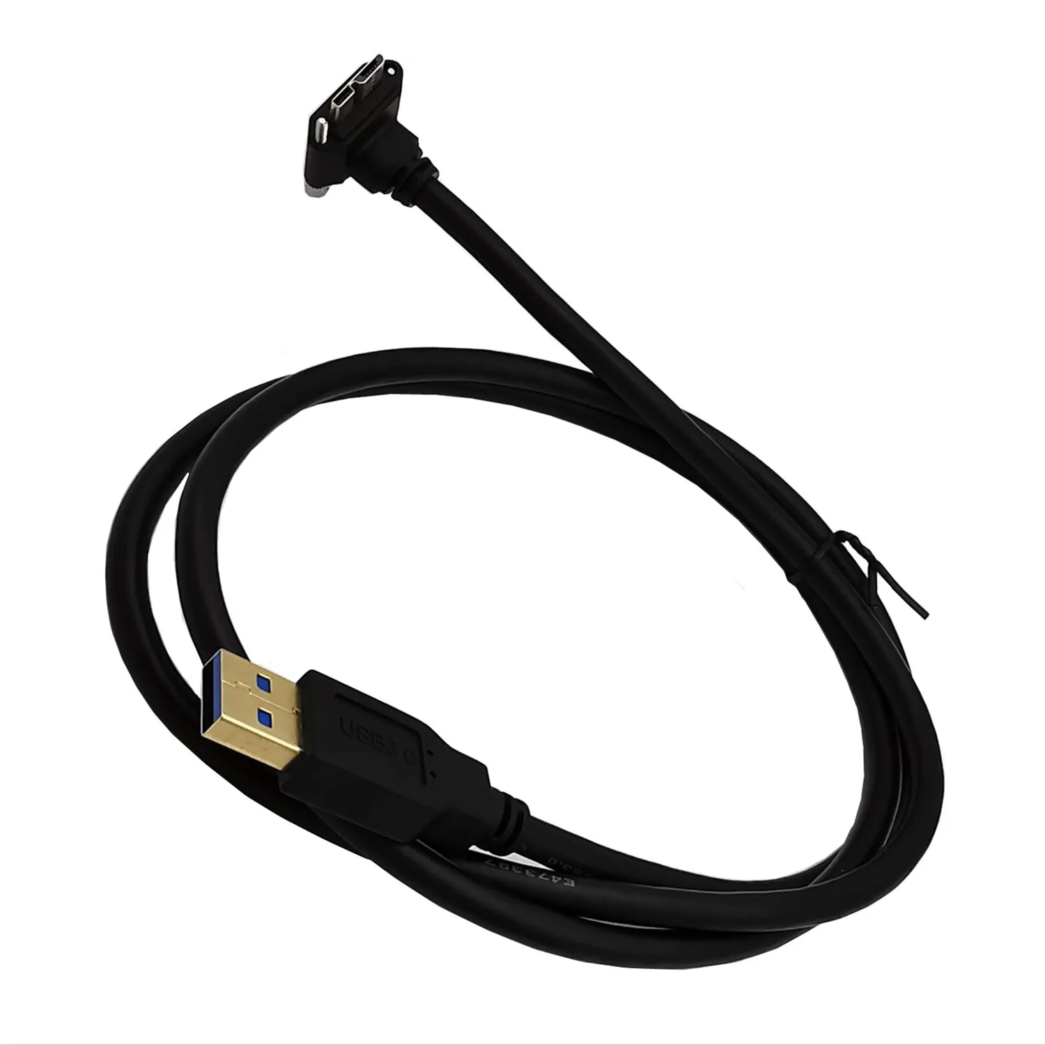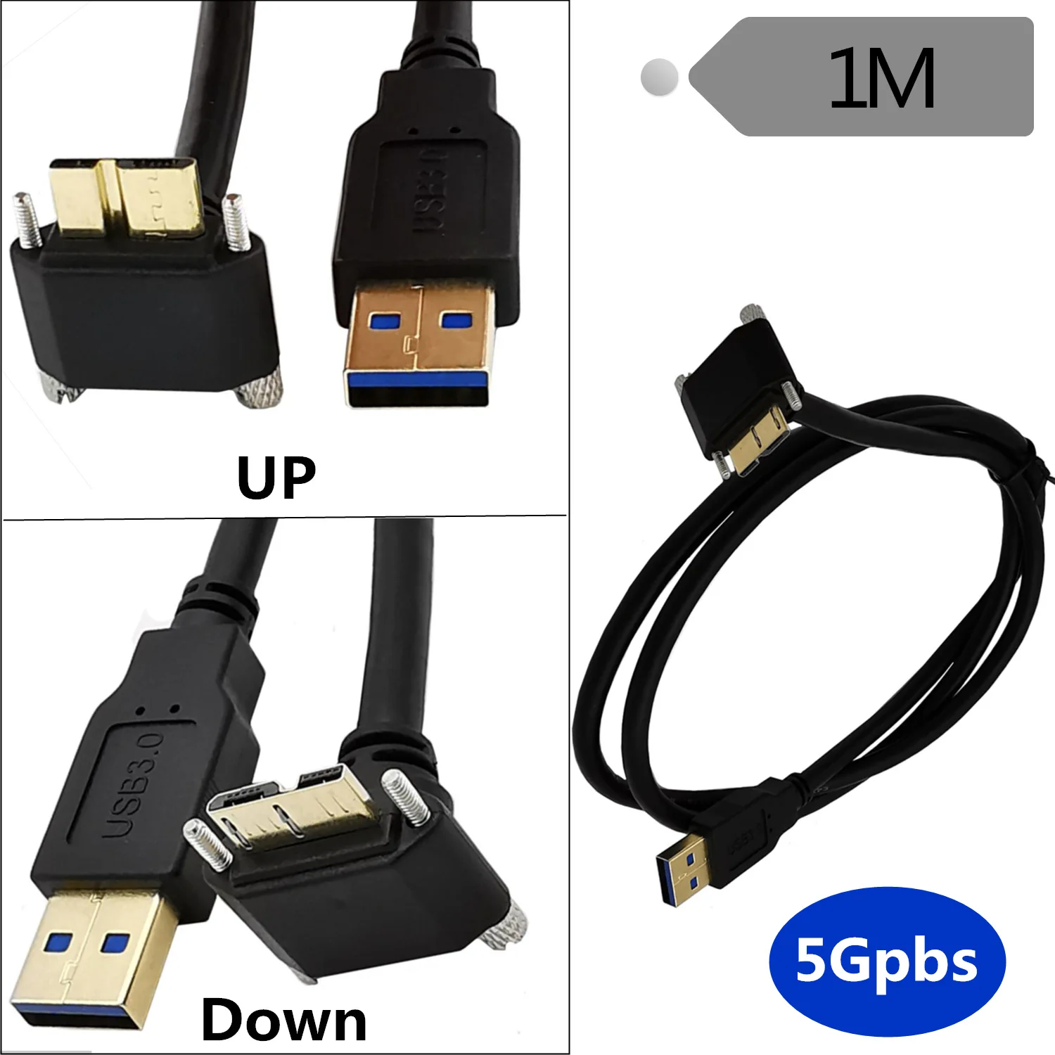 Comprar USB 3,0 chapado en oro a 90 grados, Micro B con tornillos de bloqueo, cable de datos de montaje, 0,3 M, 1M, 1,8 M, 3M