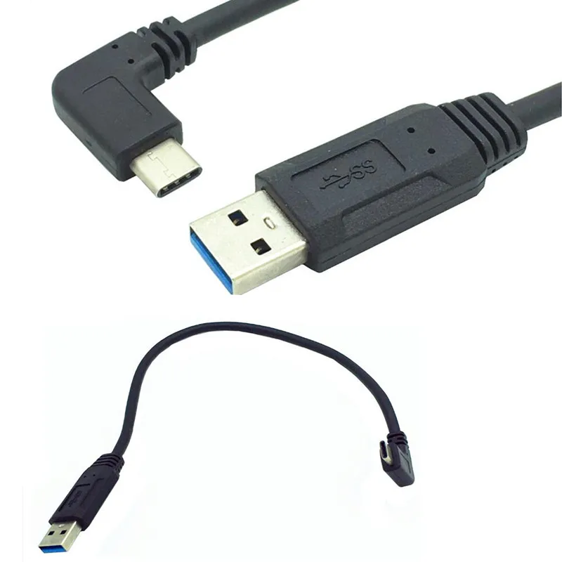 USB 3,0 macho a USB Ángulo de 90 grados 3,1 Tipo-C Macho USB Sincronización de datos y conector de cable de carga