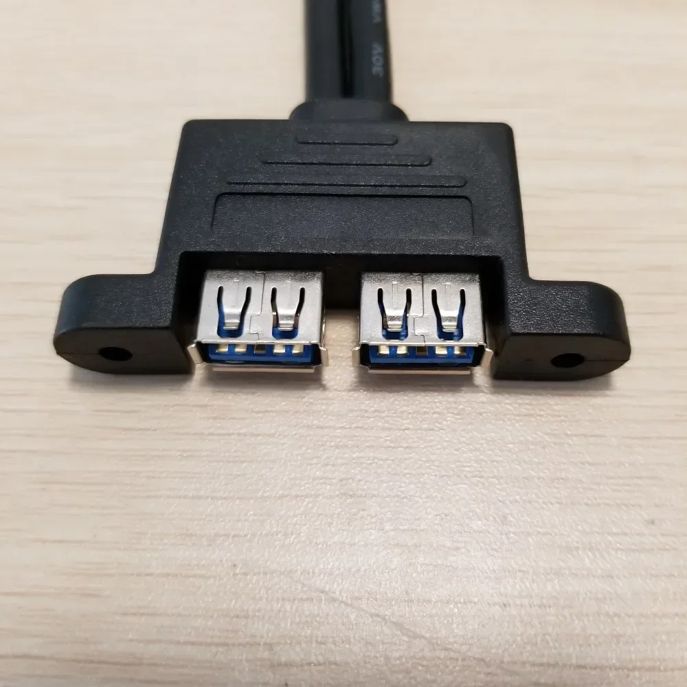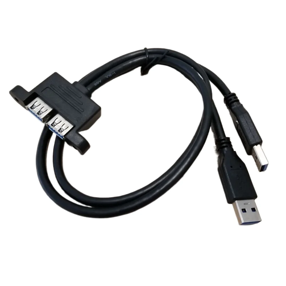 Comprar USB 3,0 macho Dual a montaje en panel hembra con tornillos, Cable de datos de extensión de 50cm