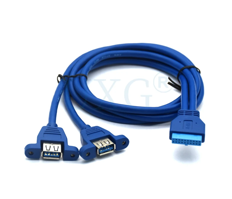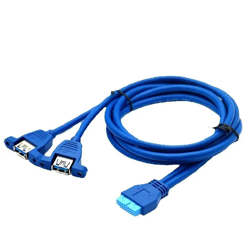 Comprar USB 3.0 puertos duales tipo de montaje de tornillo hembra a placa base Cable de cabecera de 20 pines azul 30 cm/0,3 m 50 cm/0,5 m 0,8 m