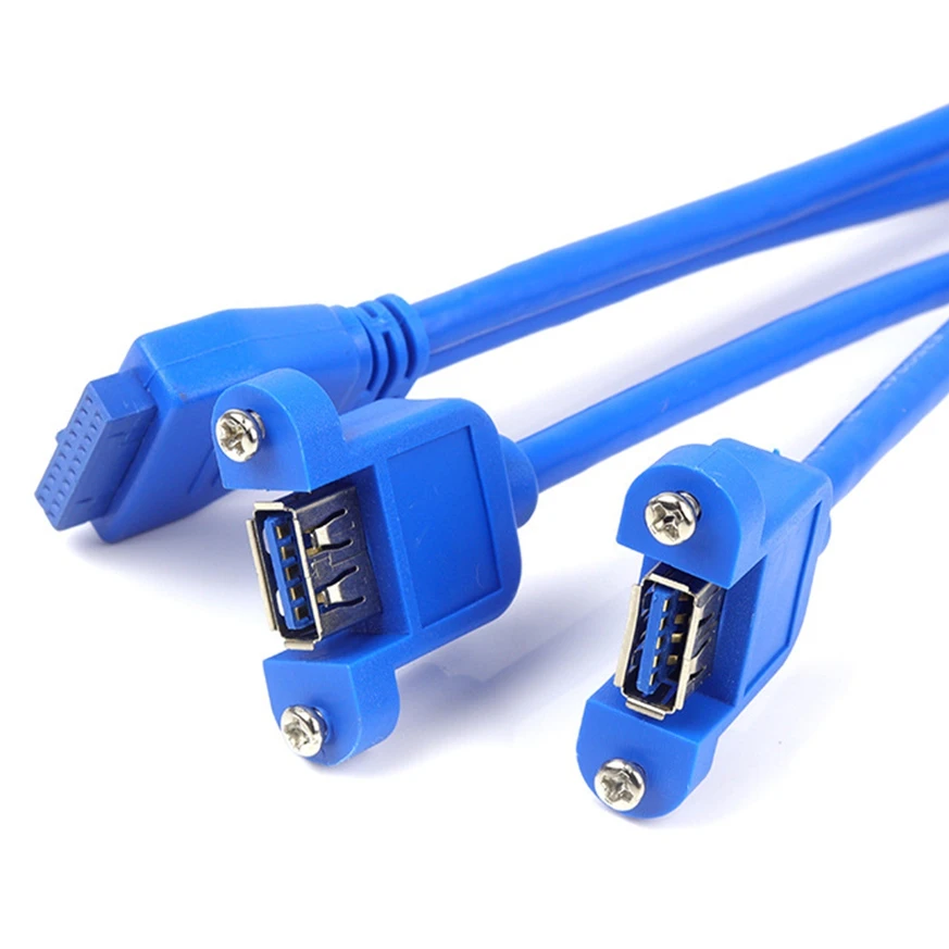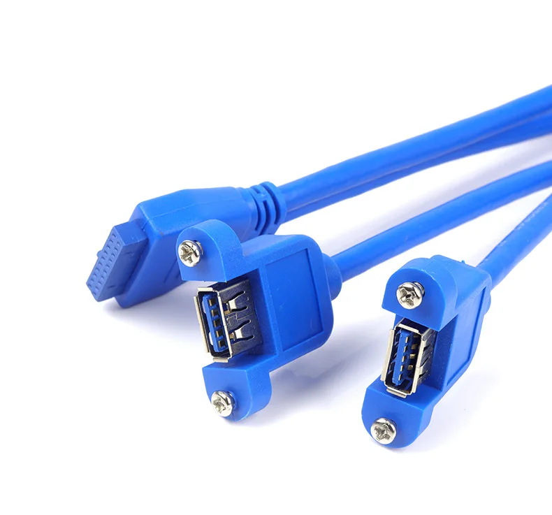 Comprar USB 3.0 puertos duales tipo de montaje de tornillo hembra a placa base Cable de cabecera de 20 pines azul 30 cm/0,3 m 50 cm/0,5 m 0,8 m