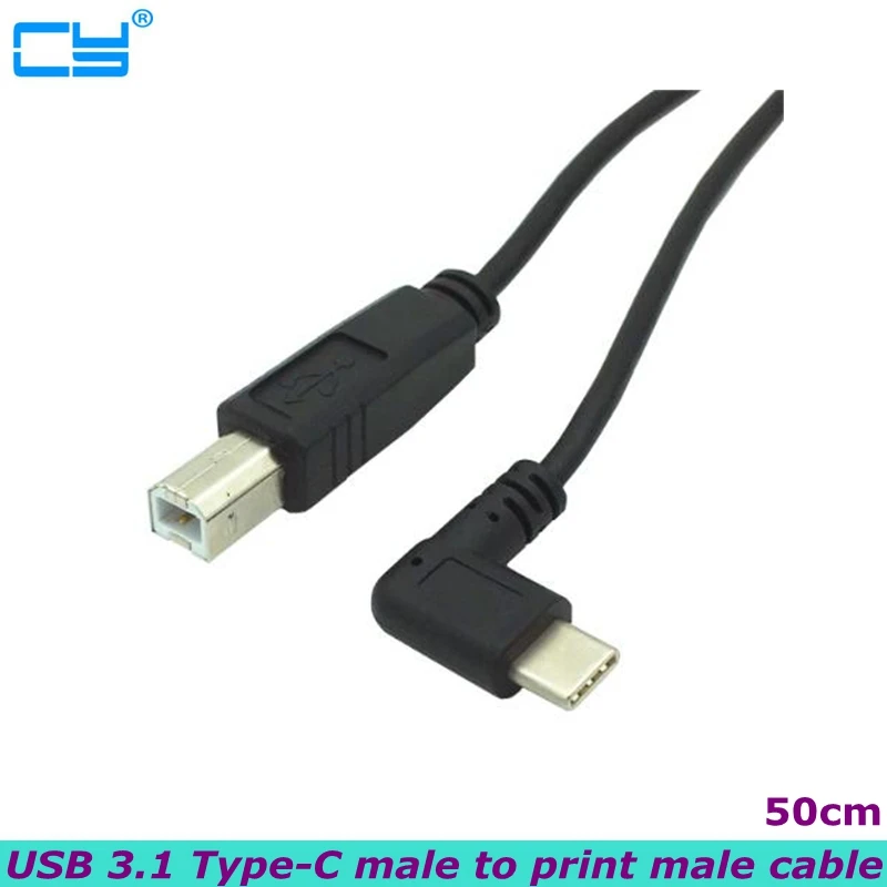 Comprar USB 3,1 tipo c 90 grados macho a USB Cable de datos tipo B estándar para teléfono móvil a HUB disco duro impresora escáner OTG 0,5 m