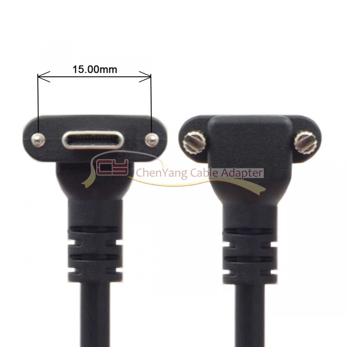 Up Angled USB 3,1 Tipo-C Bloqueo de tornillo dual a cable de datos USB3.0 estándar 90 grados