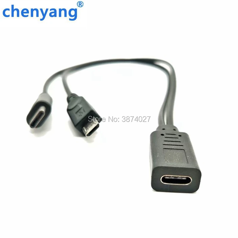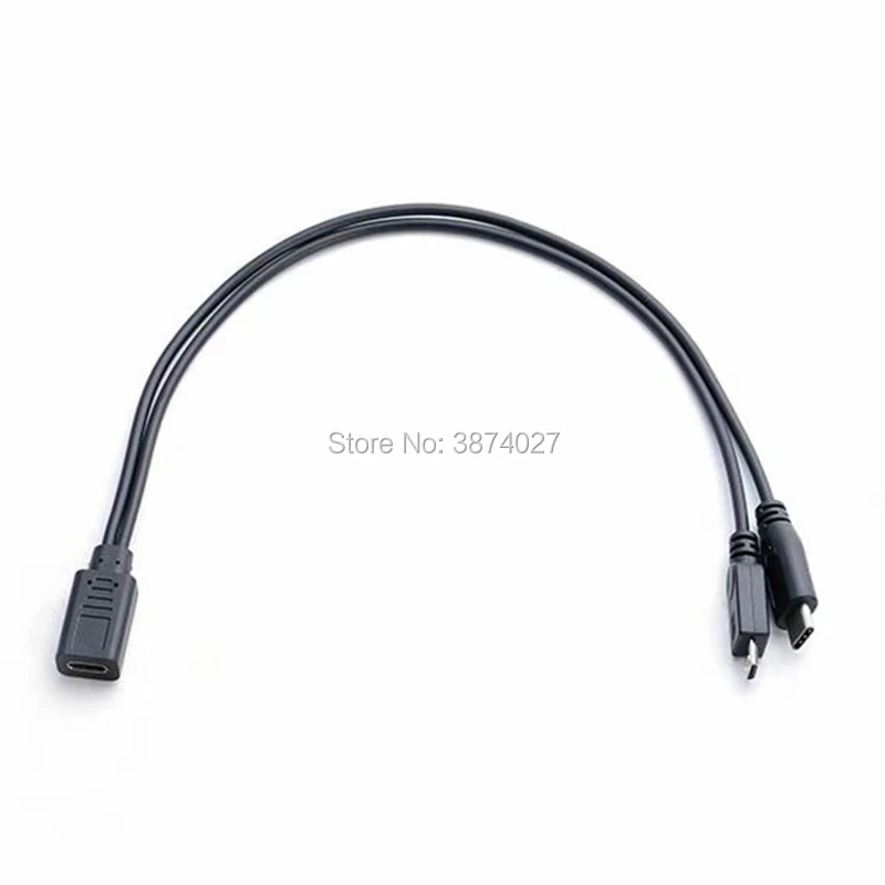 Comprar USB 3,1 tipo C hembra a Micro USB macho y Tipo C macho, Cable de alimentación de extensión de datos divisor para teléfono Android y tableta, 30cm