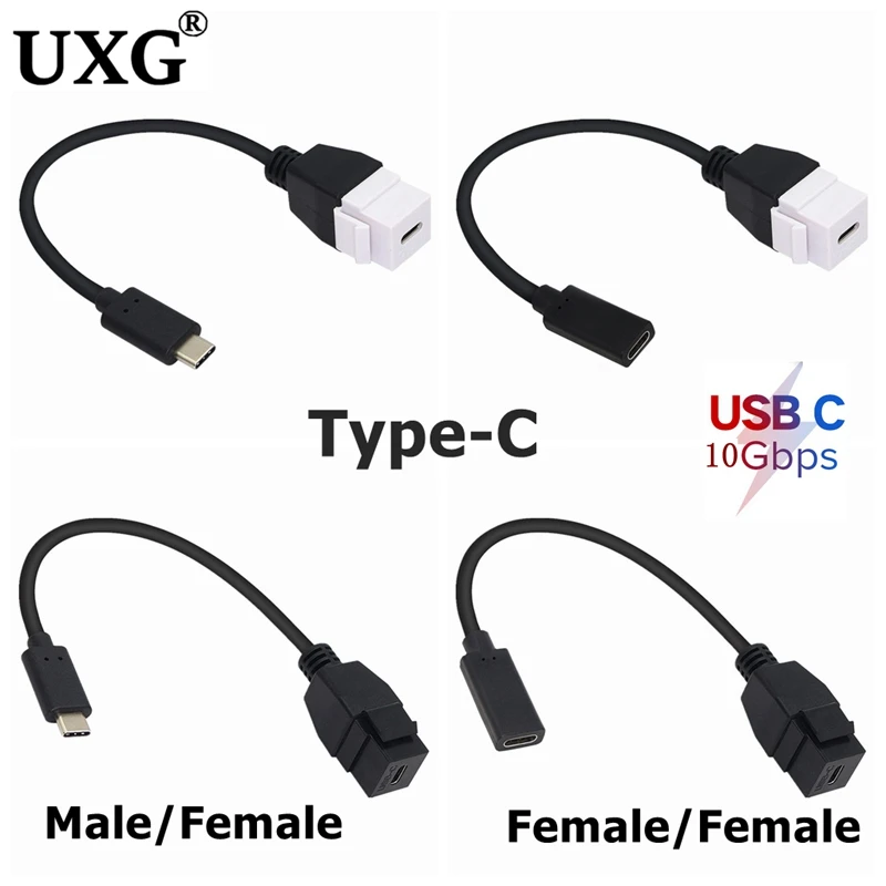 USB 3,1 tipo C Keystone macho hembra a hembra USB C acoplador inserciones de Cable de enchufe conector de extensión de puerto para toma de corriente de placa de pared