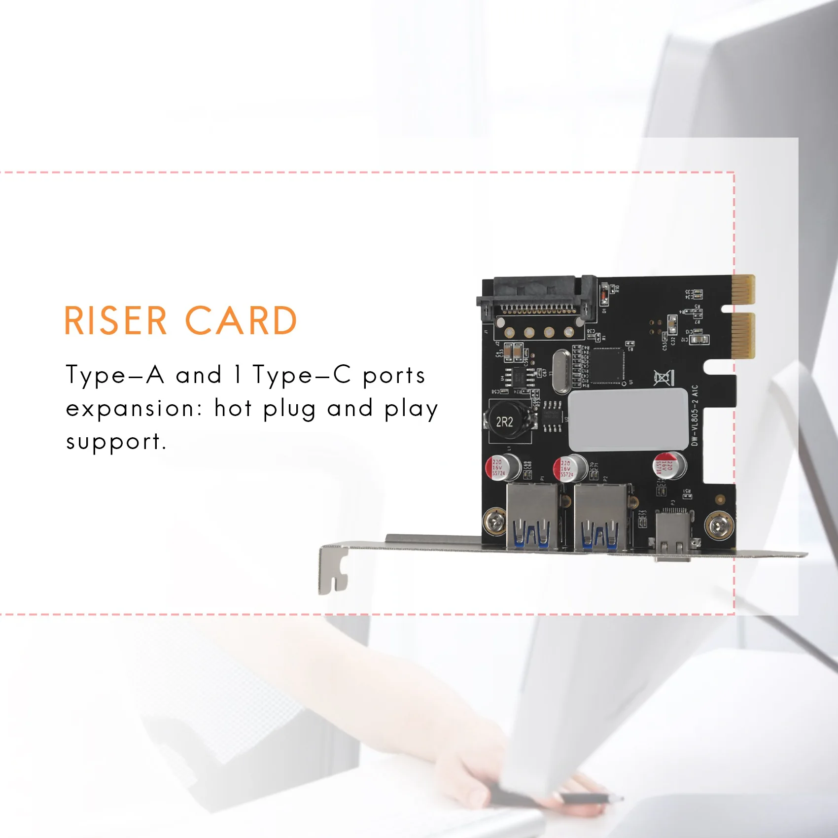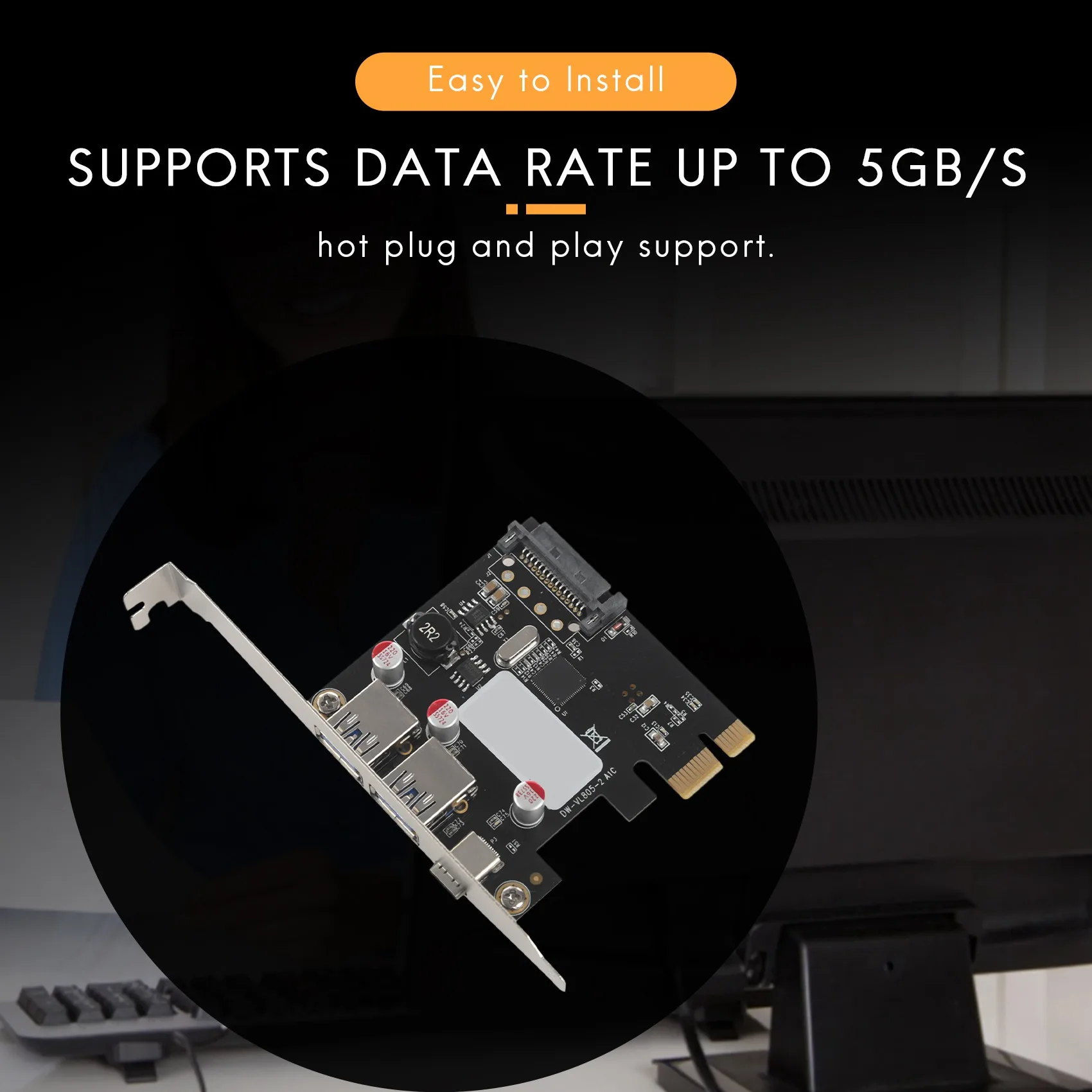 Comprar Usb 3,1 tipo C Pcie tarjeta de expansión Pci-E A 1 Tipo C y 2 tipo A 3,0 adaptador Usb Pci Express controlador Hub para Pc de escritorio