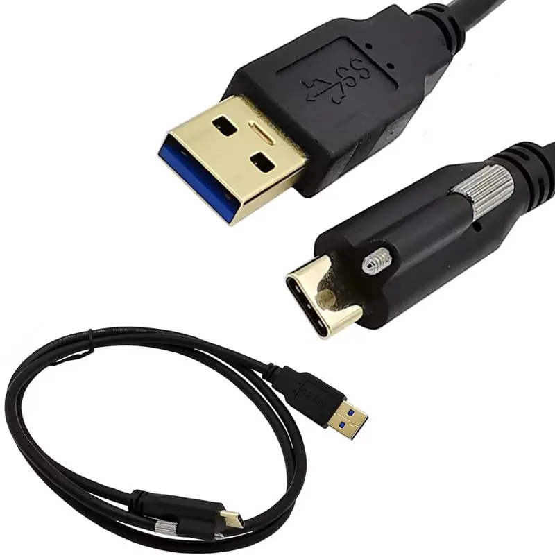 Comprar USB 3,1 tipo-C USB-C bloqueo conector estándar USB3.0 Cable de datos con tornillo de montaje Panel 30cm-200cm cable