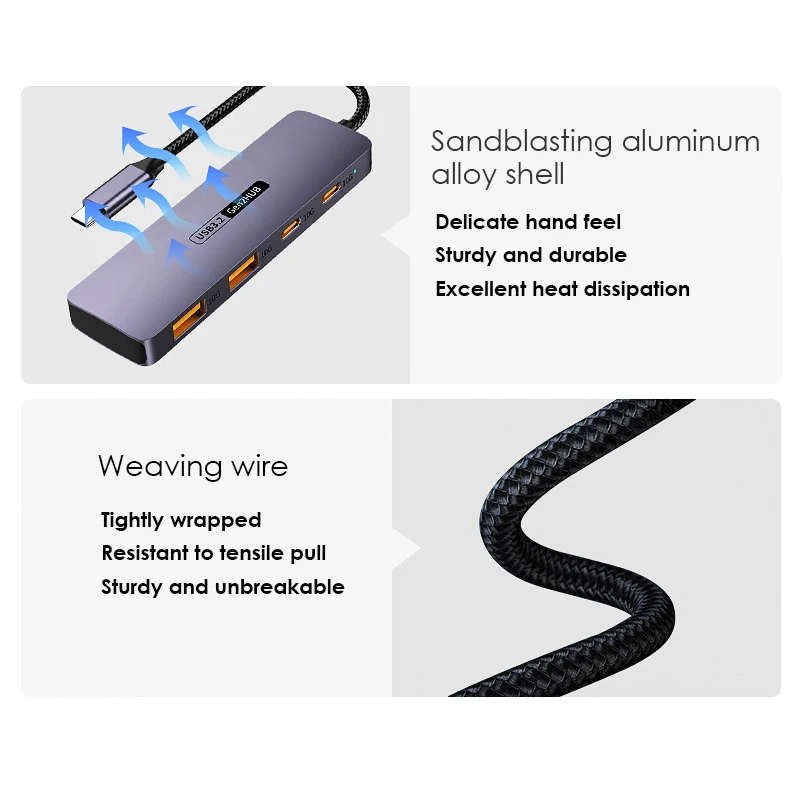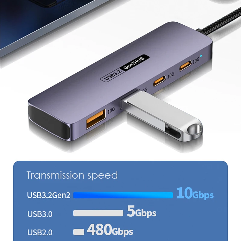 USB 3.2 Gen 2 Hub 10Gbps Dual USB 3.0/Tipo C OTG Adaptador divisor de transmisión de datos para Mac Mini Thunderbolt 3/4