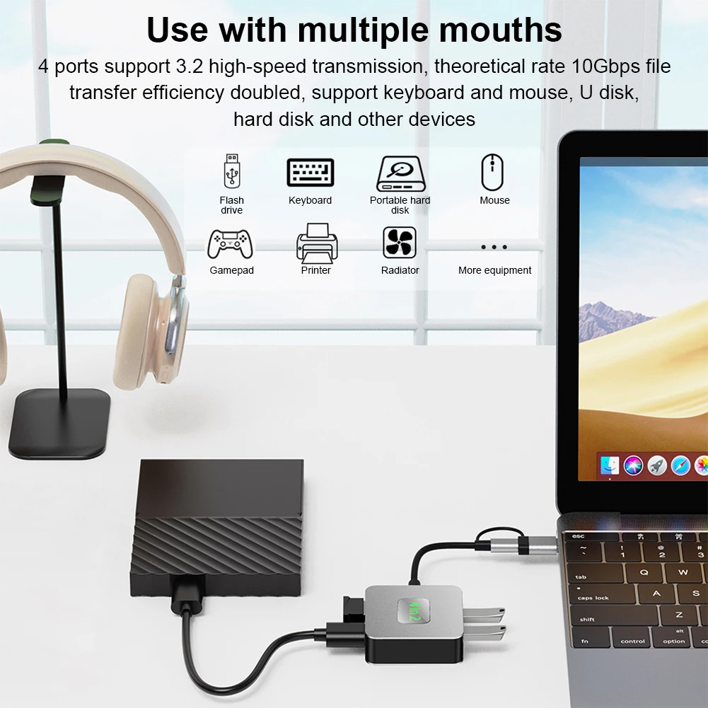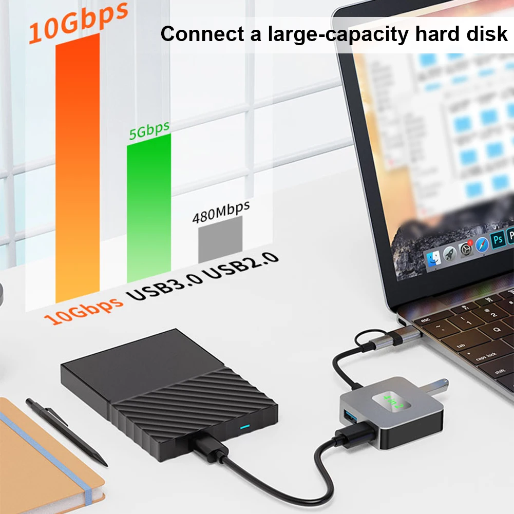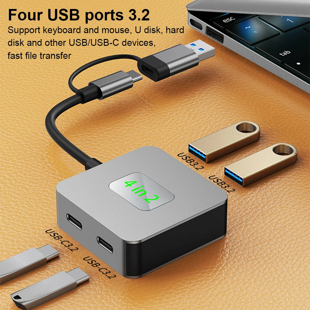 Comprar USB 3,2 Hub 4 en 1 USB C Hub USB tipo C adaptador multipuerto 2 * USB3.2 + 2 * USB-C3.2 estación de acoplamiento adaptador USB accesorios de computadora