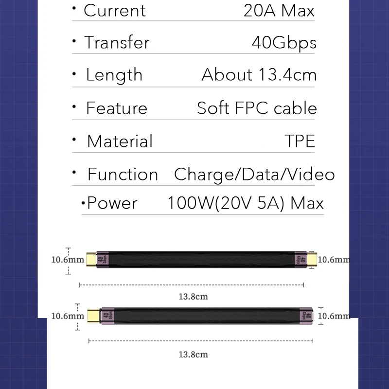USB 4.0 Gen3 40Gbps Thunderbolt 3 Cable SSD de sincronización de datos PD 100W 5A Carga rápida USB C a Tipo C 8K@60Hz USB-C para MacBook Pro