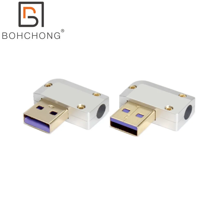 90 grados USB A carcasa de cobre plata negro tipo C USB 3,0 4 5 Core Pin enchufe de Metal para Cable de carga Cable de teclado Cable DE DATOS DIY
