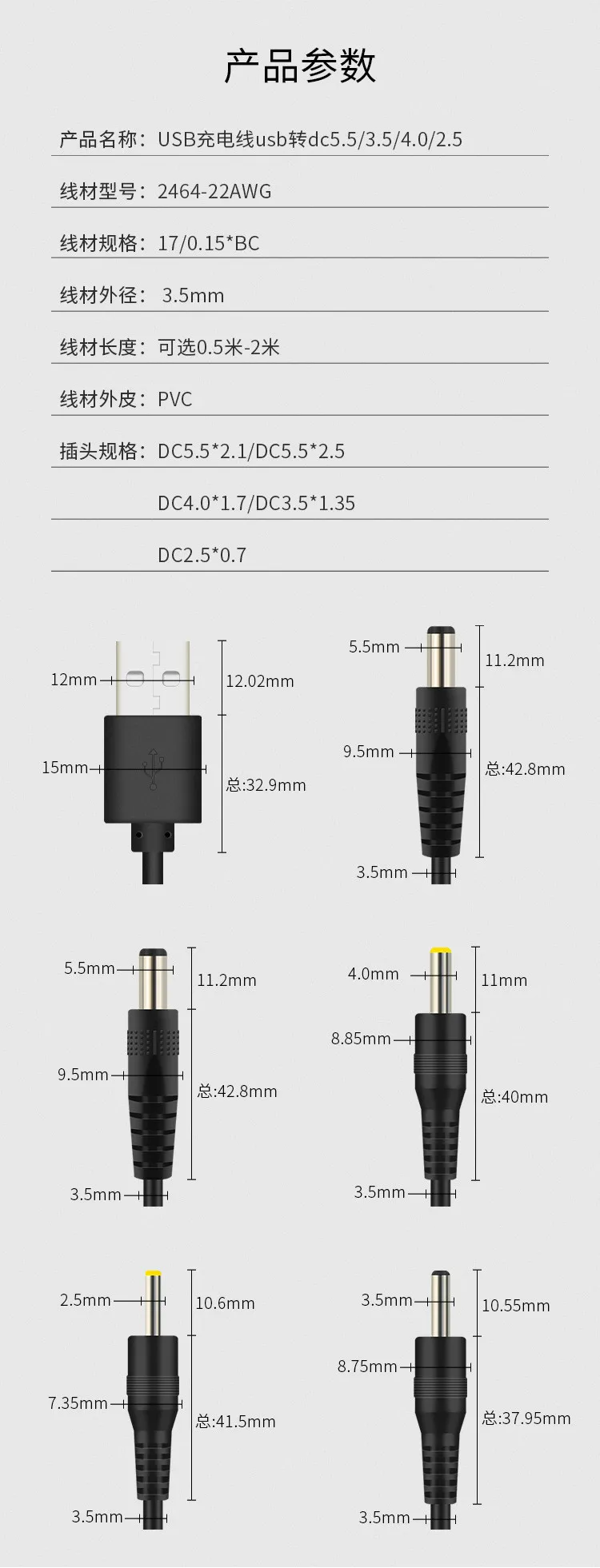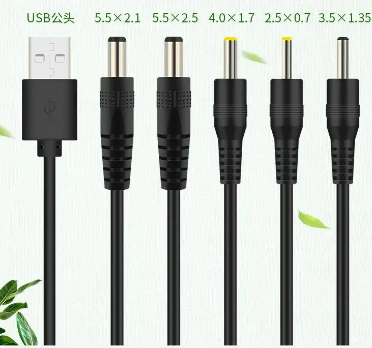 USB A macho a DC 2,0 0,6 2,5 3,5 1,35 4,0 1,7 5,5 2,1 5,5 2,5mm Fuente de alimentación enchufe tipo A cable de extensión cables conectores