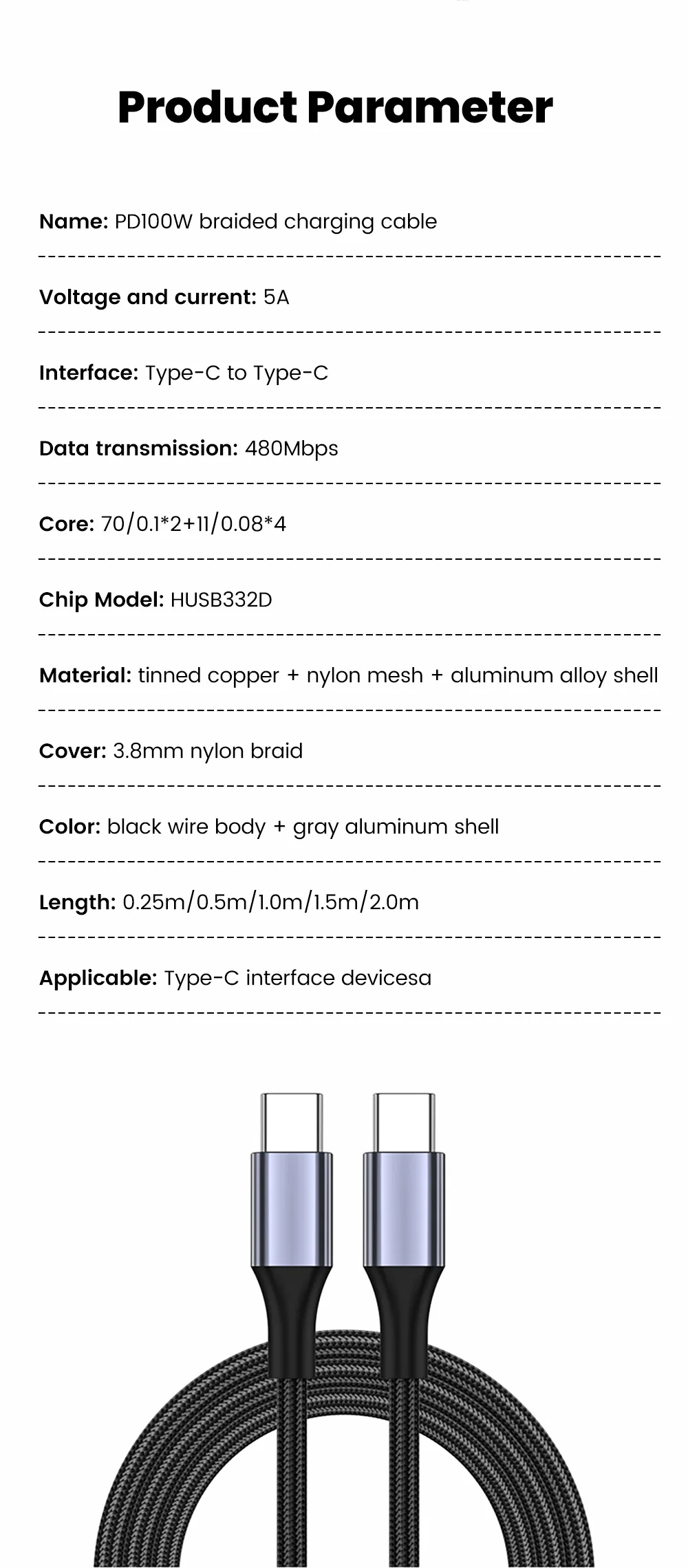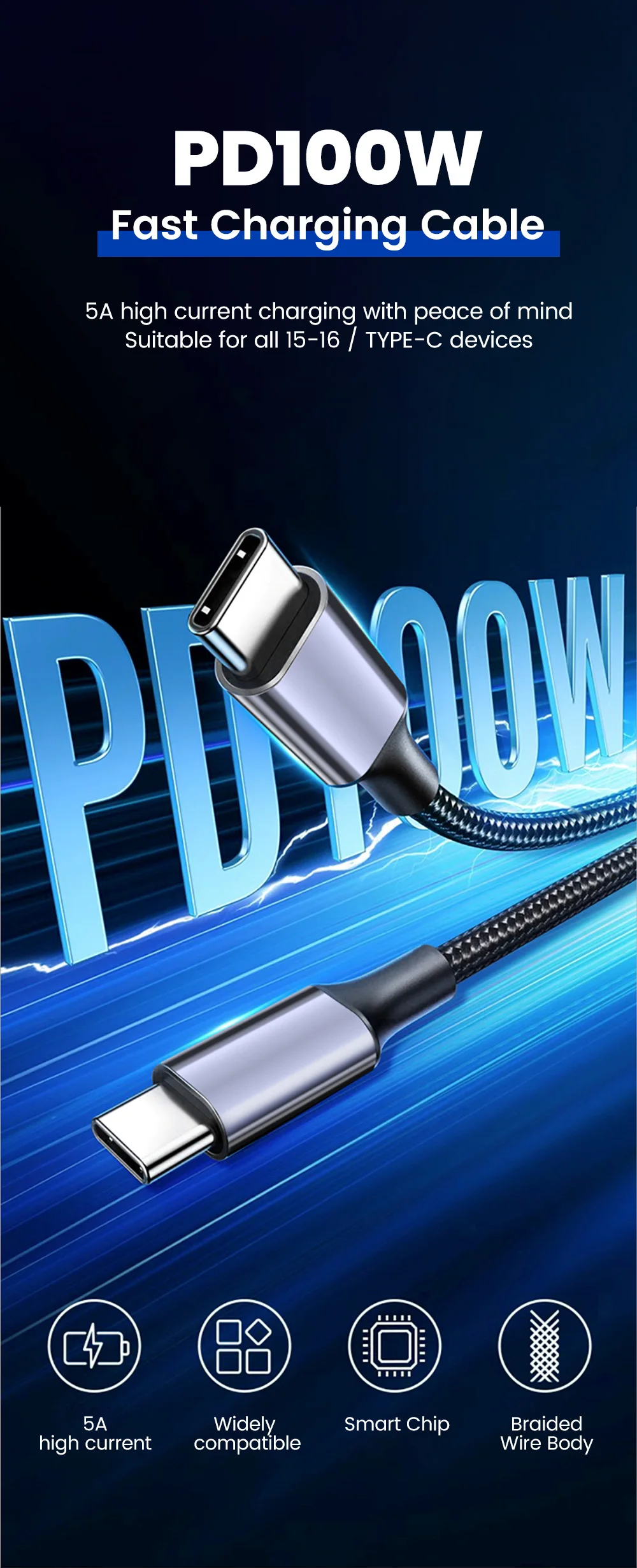 Nombre del producto: Cable de datos de carga trenzado PD100W (chip E-Maker)