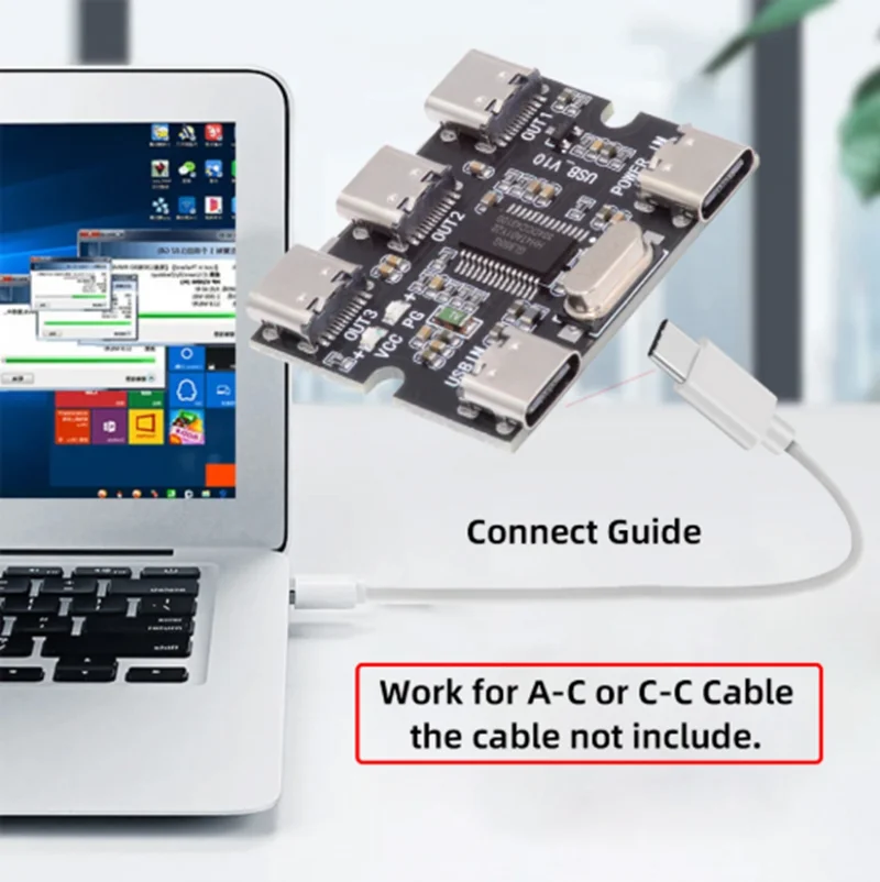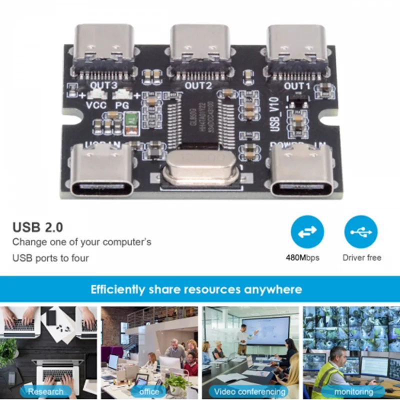 USB-C 2.0 1-to-3 tres puertos HUB PCBA PC 3 dispositivos tipo C para teclado ratón escáner impresora